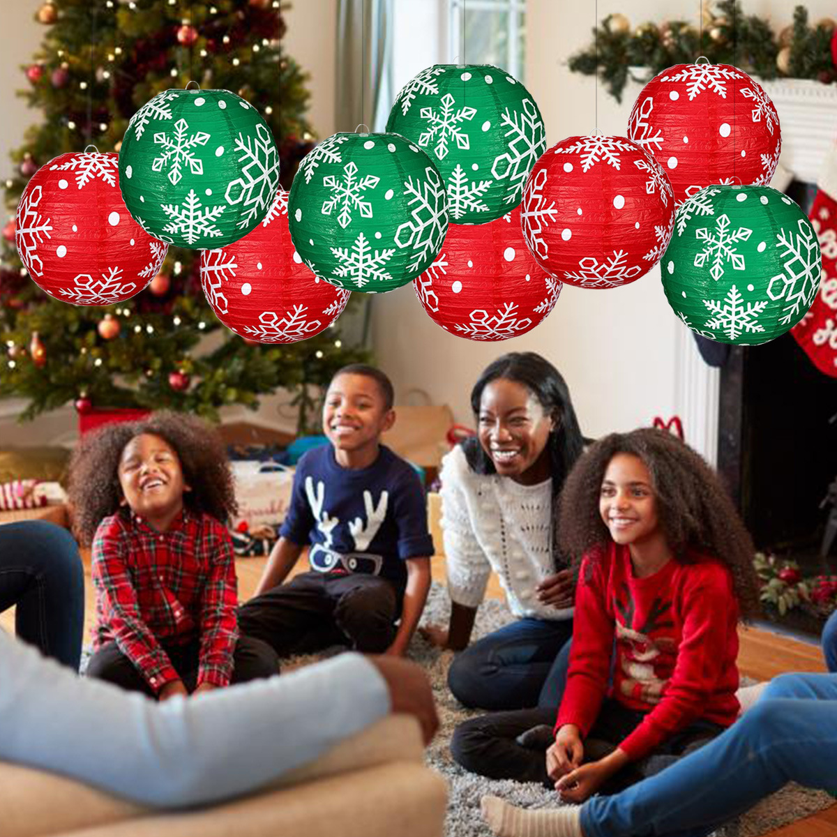 亚马逊圣诞雪花灯笼装饰圣诞节派对悬挂纸灯笼挂饰家庭布置用品