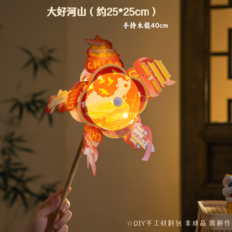 新年灯笼2026新款旋转发光风车花灯儿童古风挂饰手工diy材料包