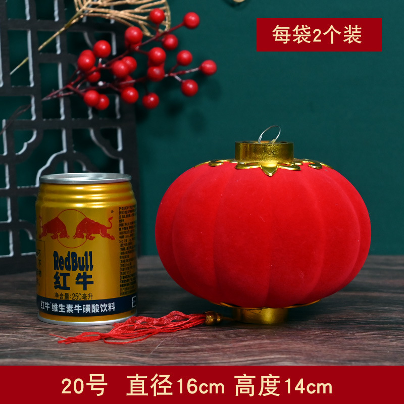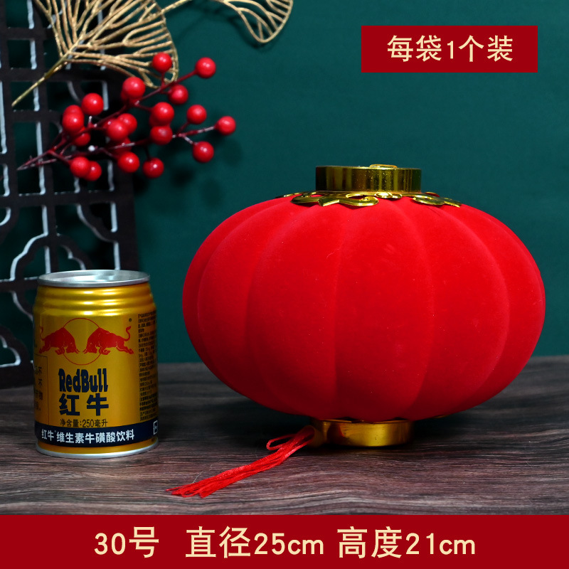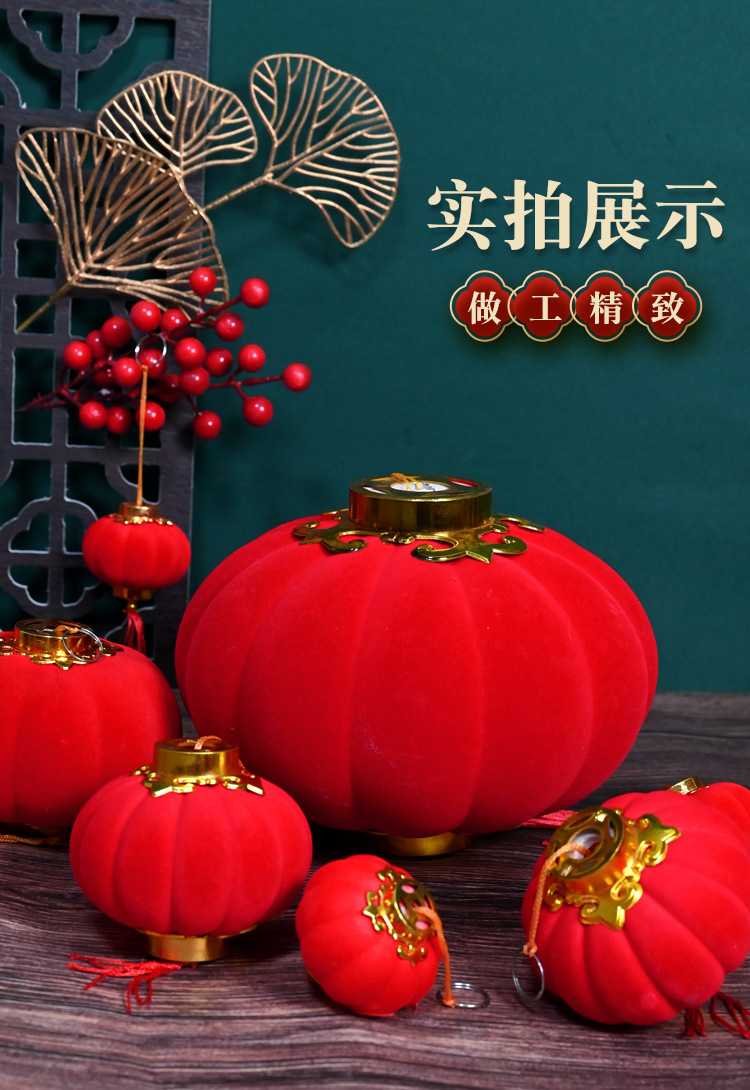 植绒连串小灯笼挂饰大红色户外绿植树上院子新年灯笼场景装饰布置
