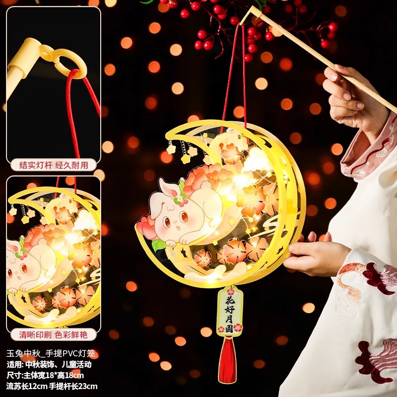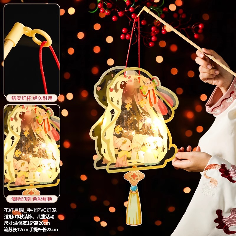 中秋节兔子灯笼2025新款儿童手工diy材料包手提古风发光六角宫灯