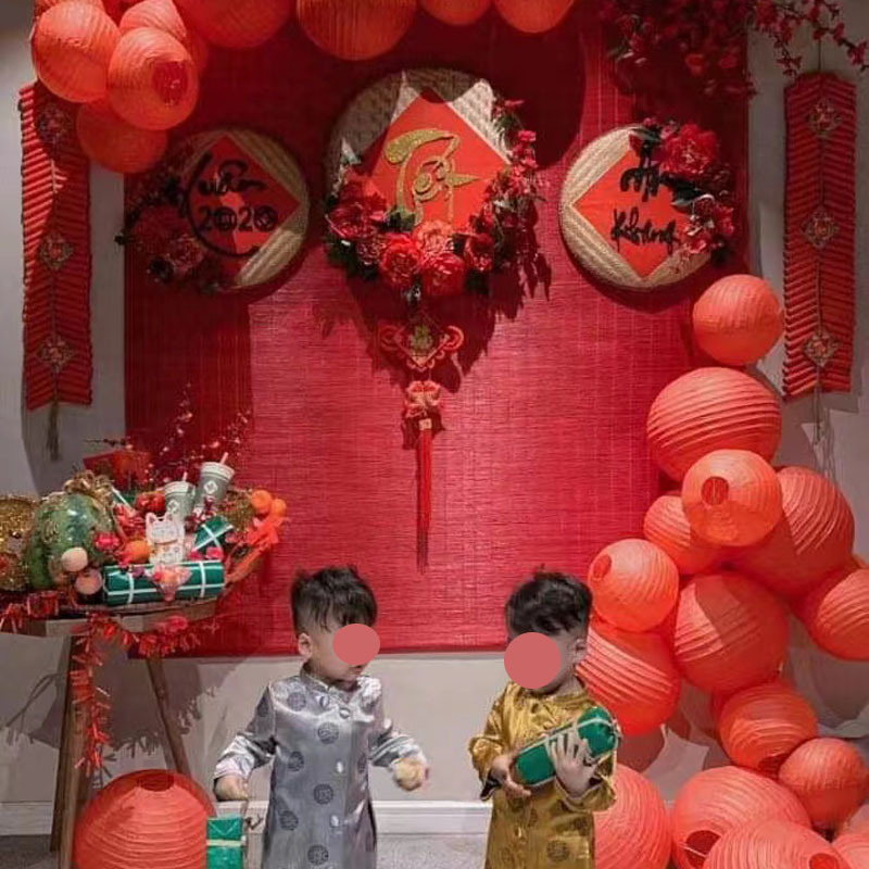 春节灯笼闹元宵传统纸灯罩新年装饰品手工DIY纯色手提圆形纸灯笼
