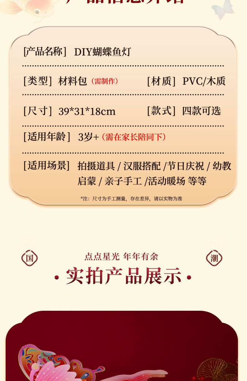中秋蝴蝶锦鲤鱼灯笼diy制作手持花灯金鱼儿童手工灯炫彩PVC飞鱼灯