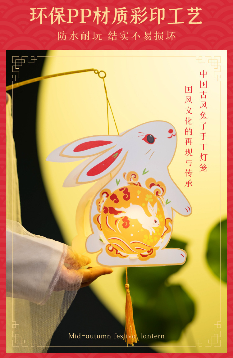 新年春节国风兔子灯笼手工diy儿童制作材料包古风发光花灯摆摊