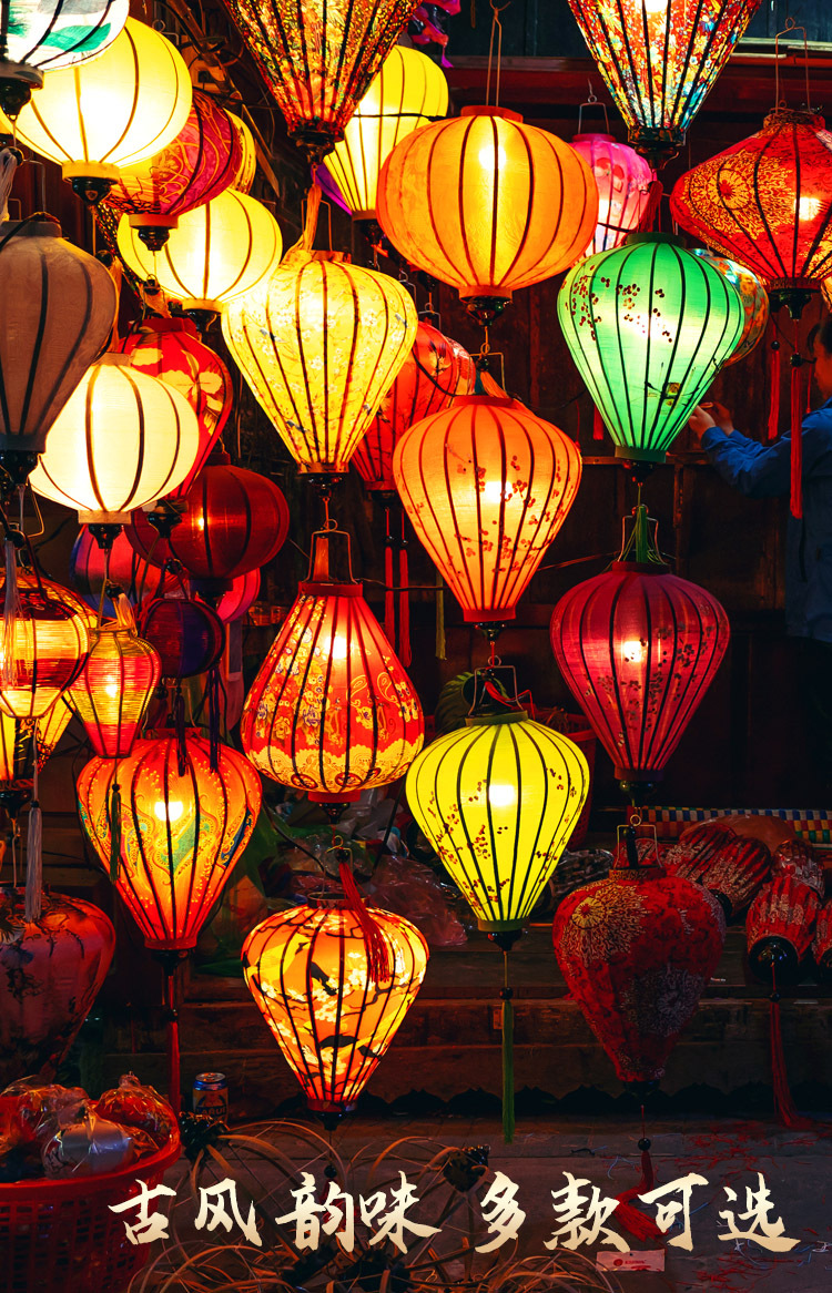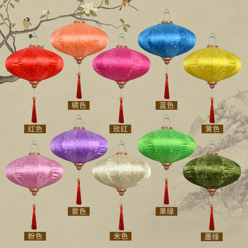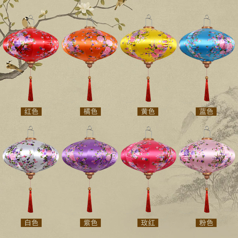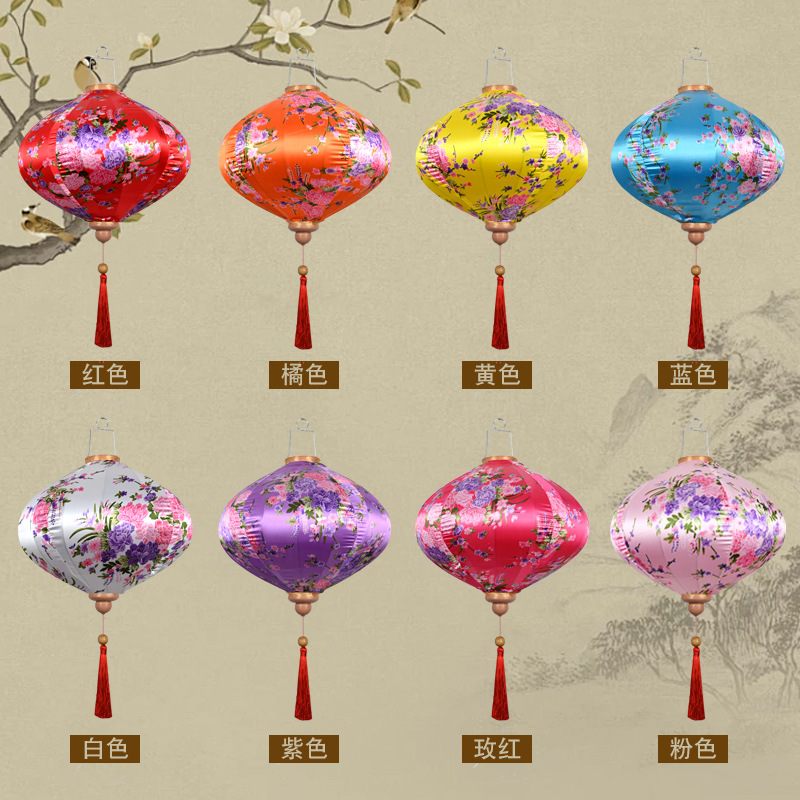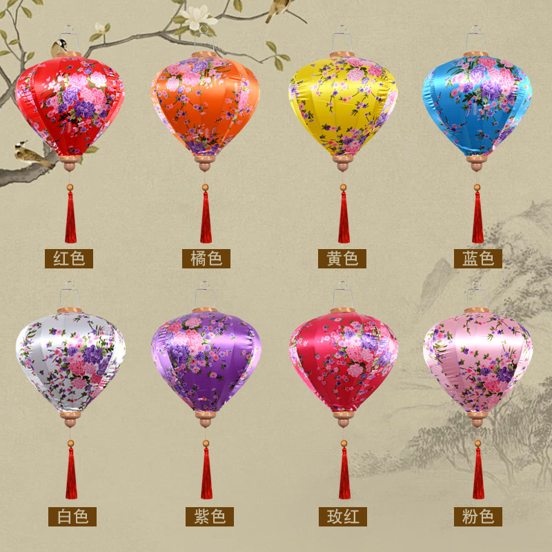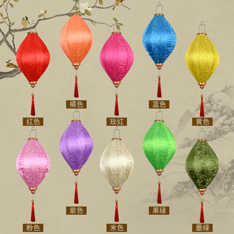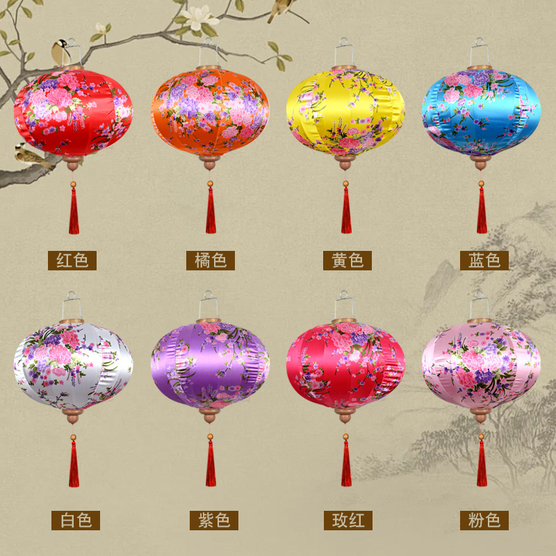 新年复古灯笼户外仿古异性景观挂饰钻石绸缎花灯街道景区布置灯笼