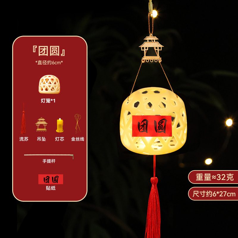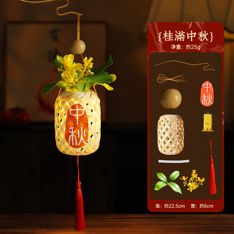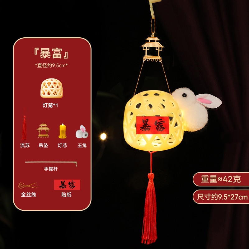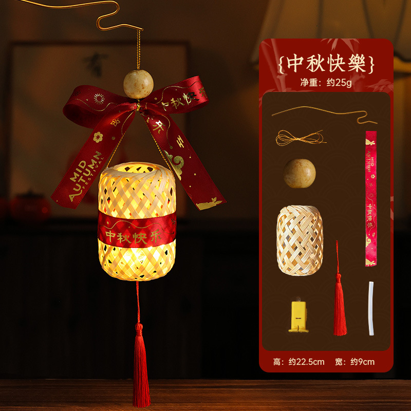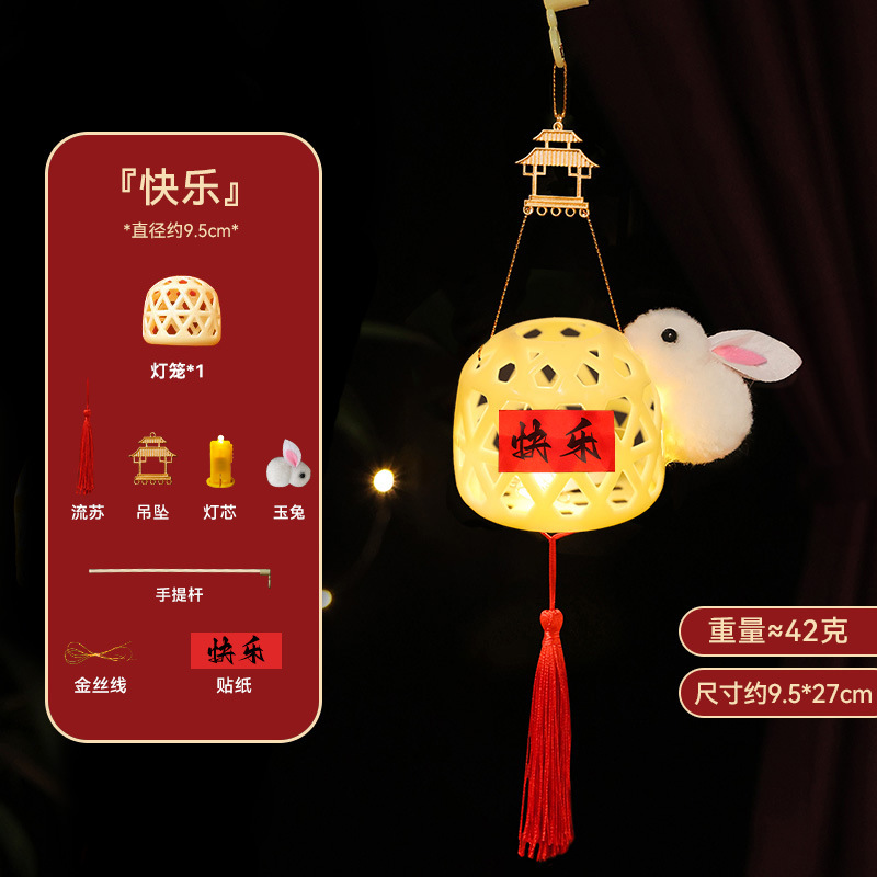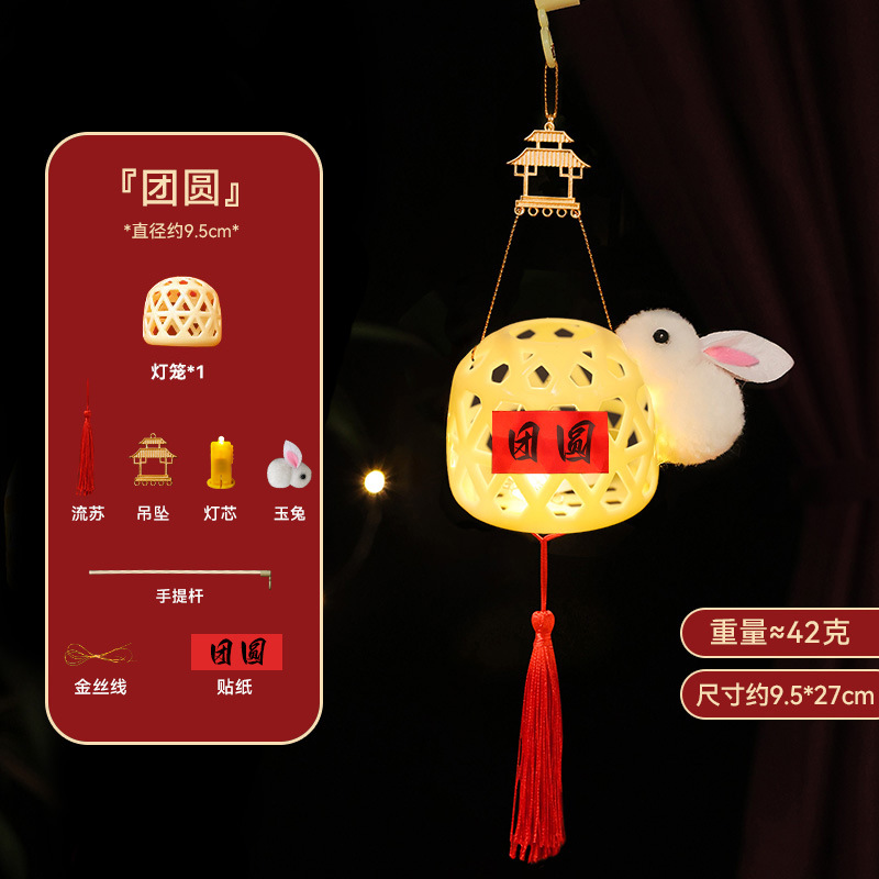 2025中秋节灯笼手提发光兔子花灯竹编小灯笼手工制作儿童摆摊玩具