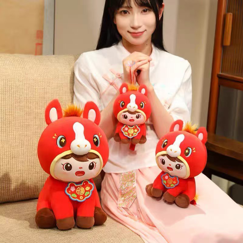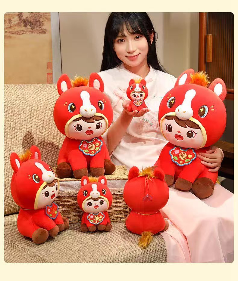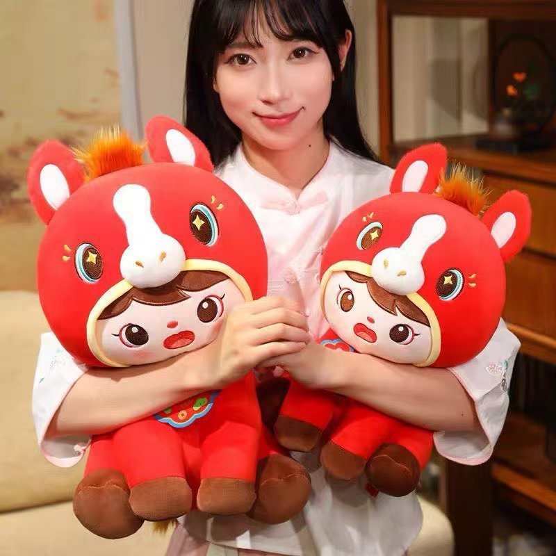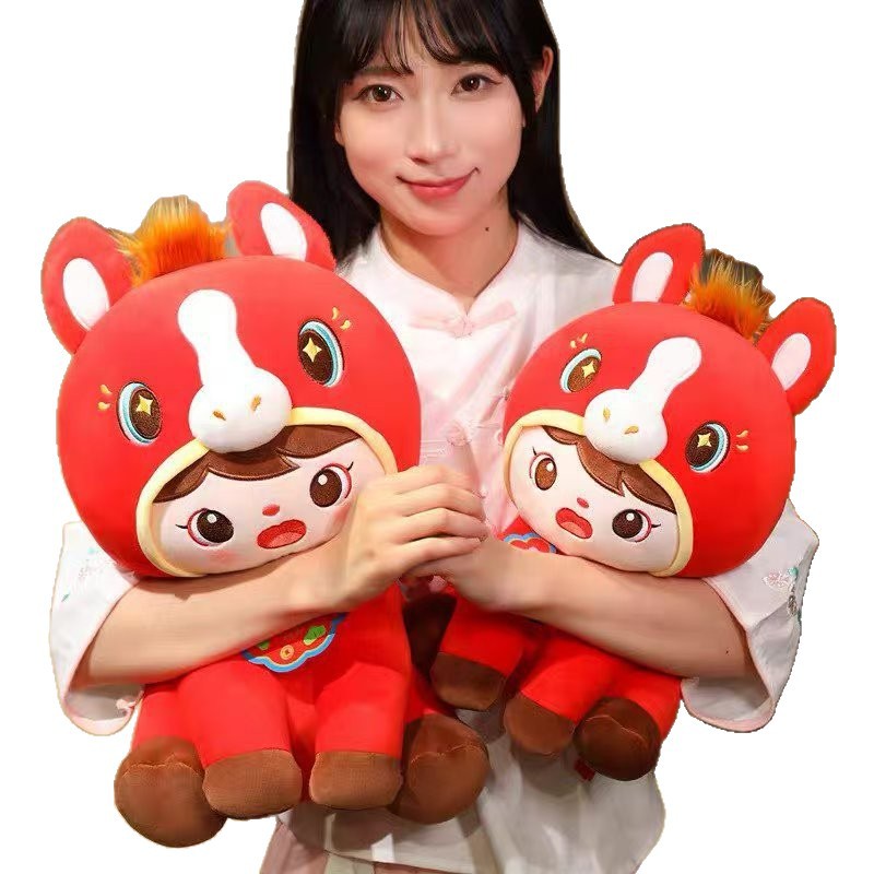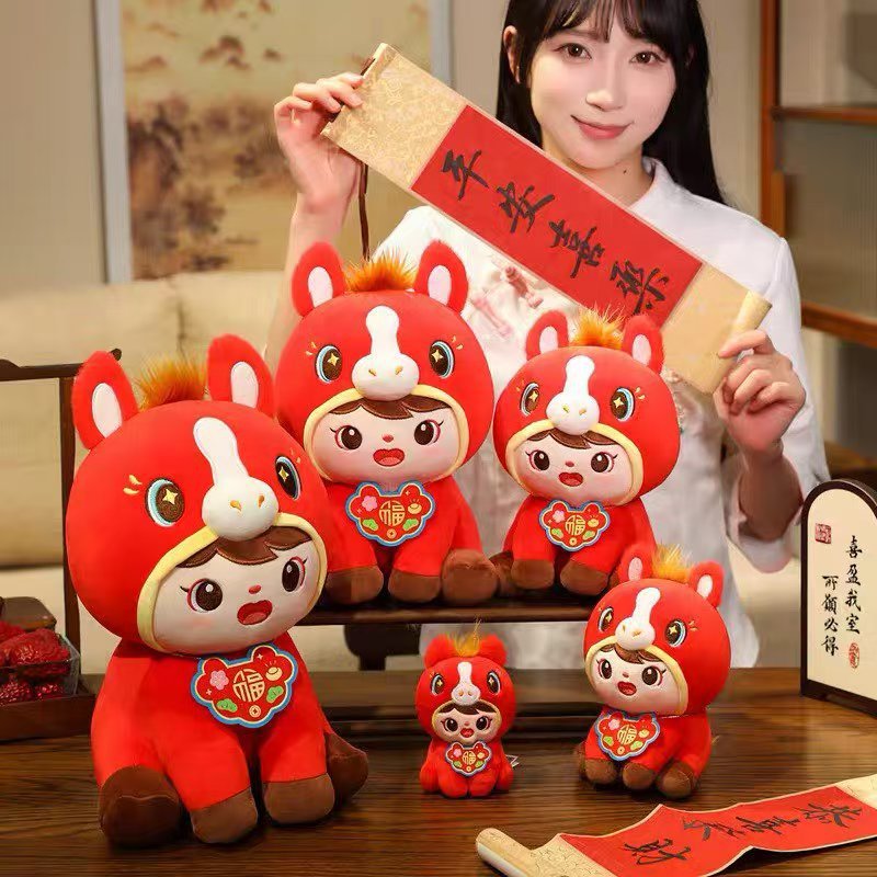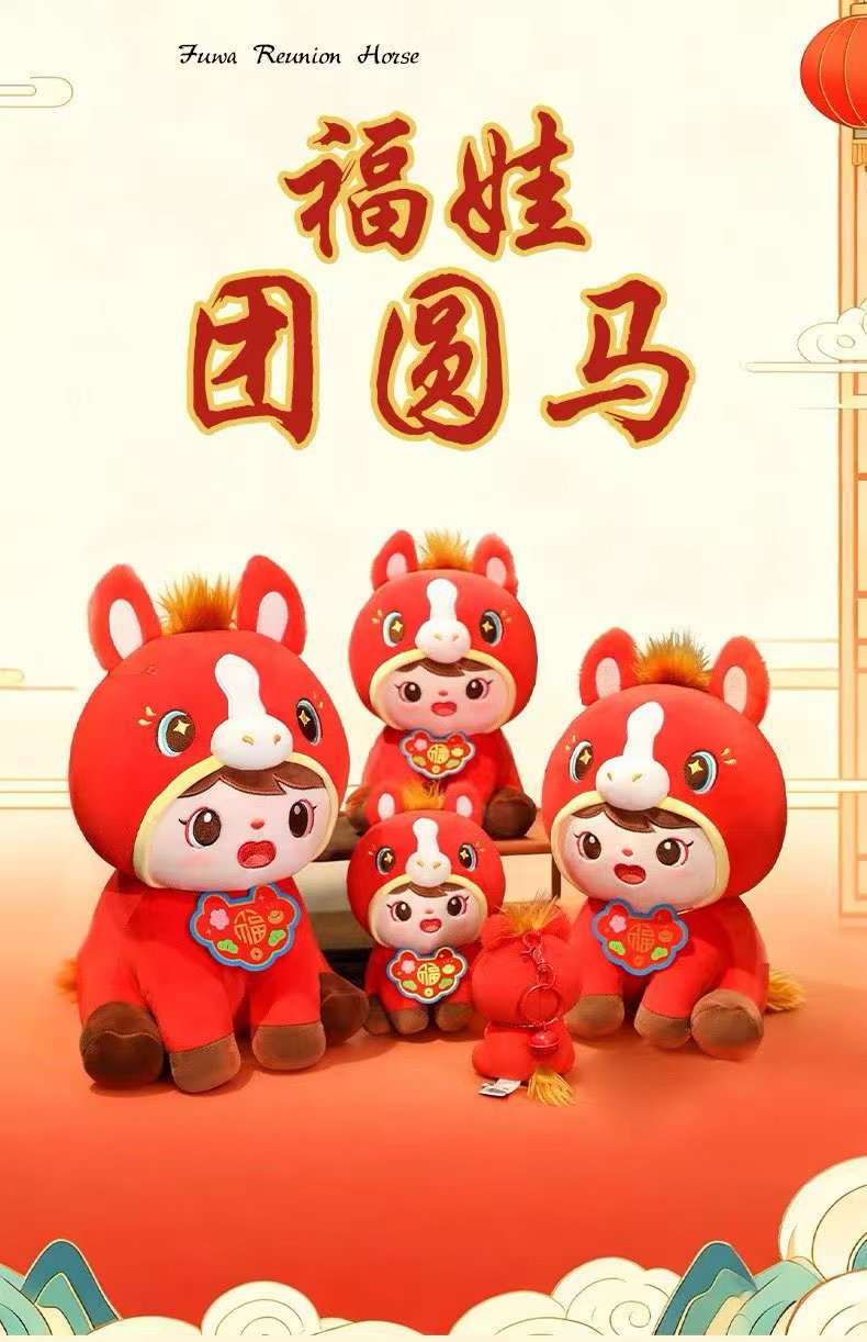 跨境福娃马玩偶可爱福娃团圆马2026马年毛绒玩具儿童陪睡娃娃抱枕
