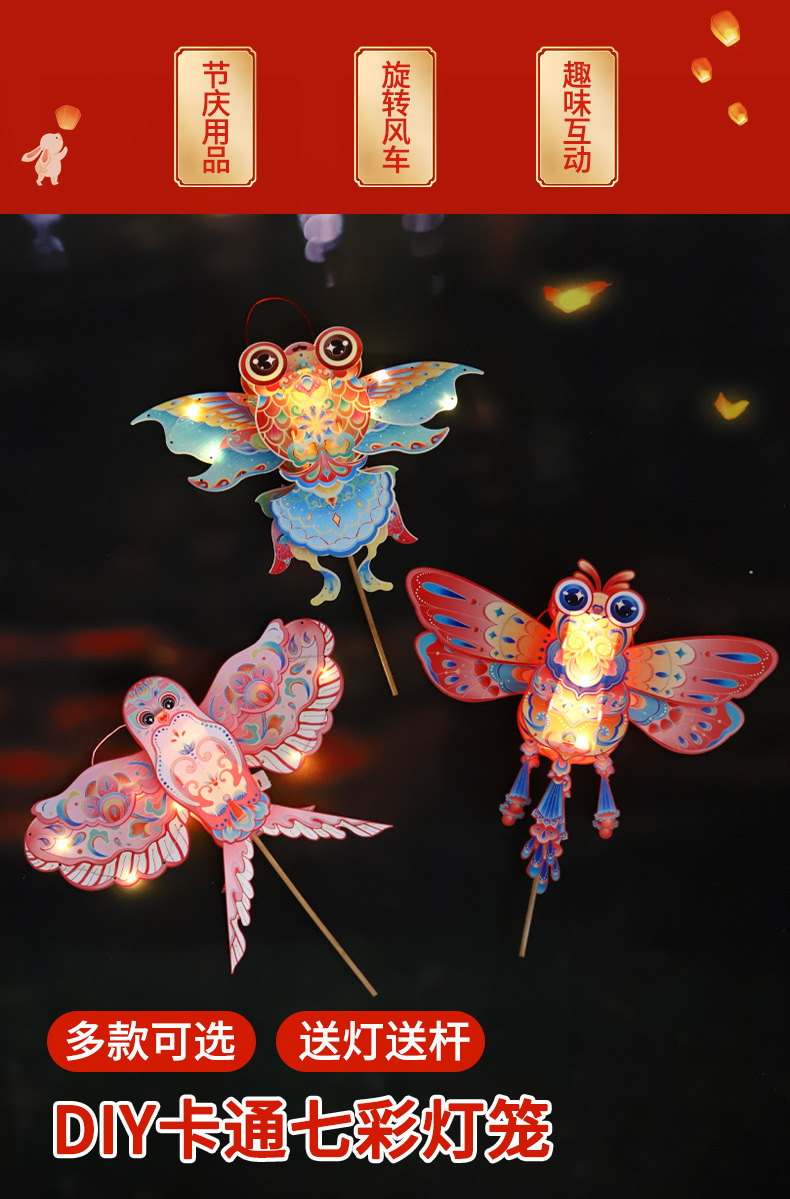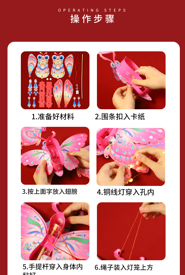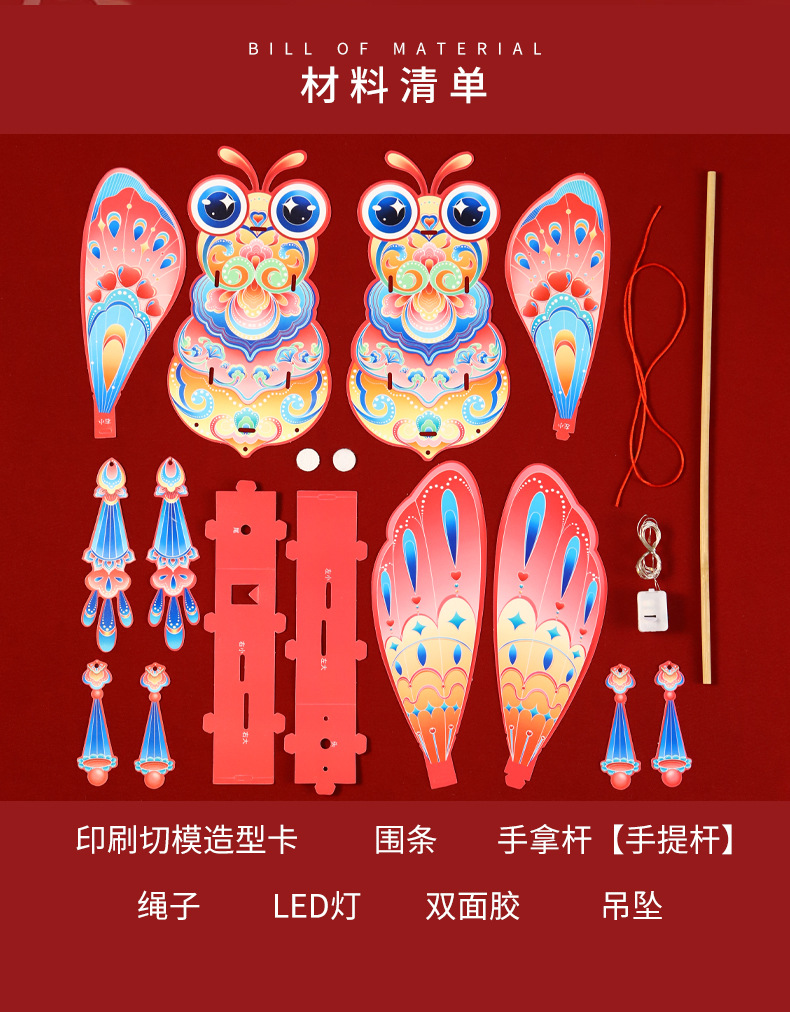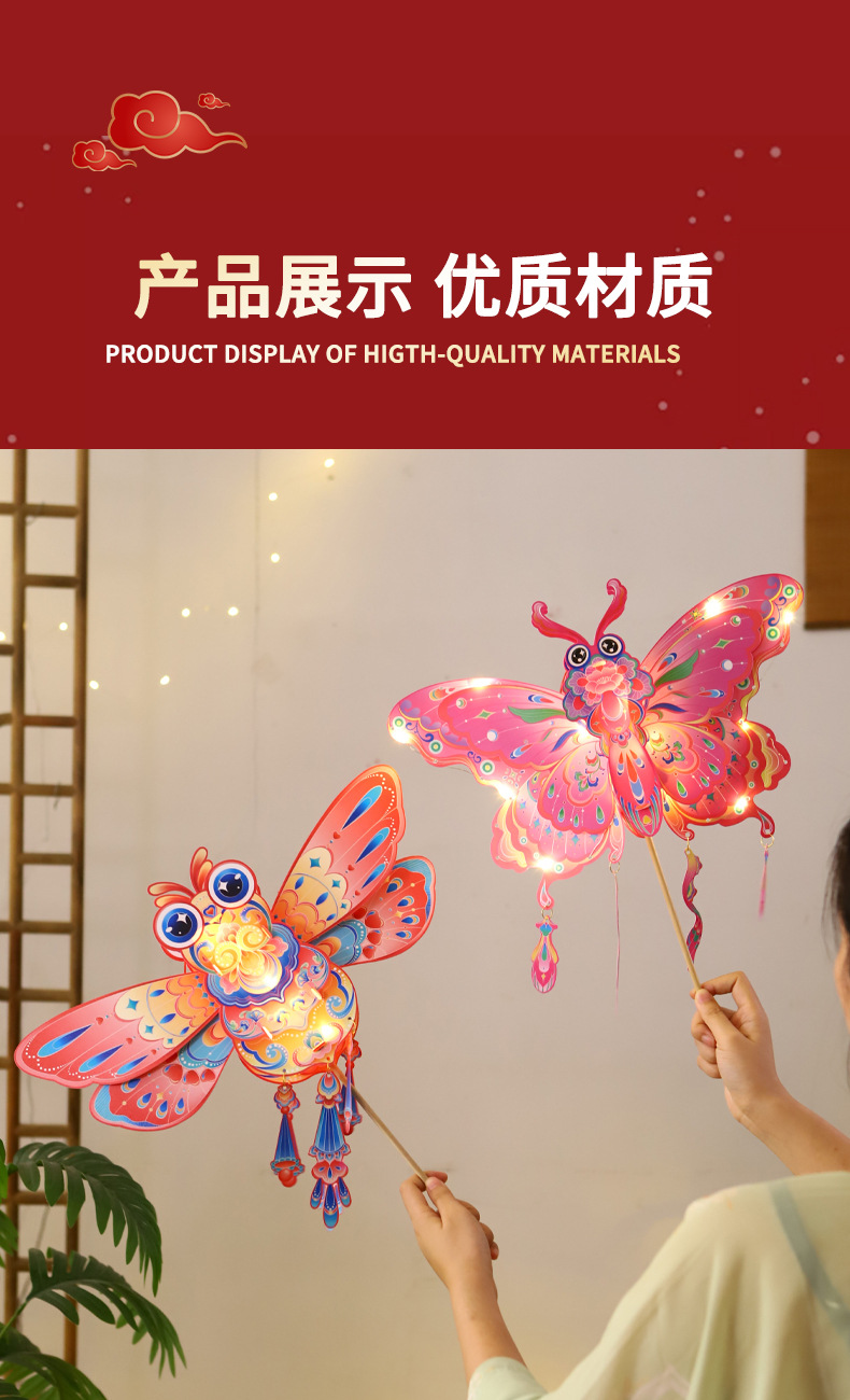 2026马年新年灯笼蝴蝶灯笼diy材料古风手工宫灯儿童手提发光花灯