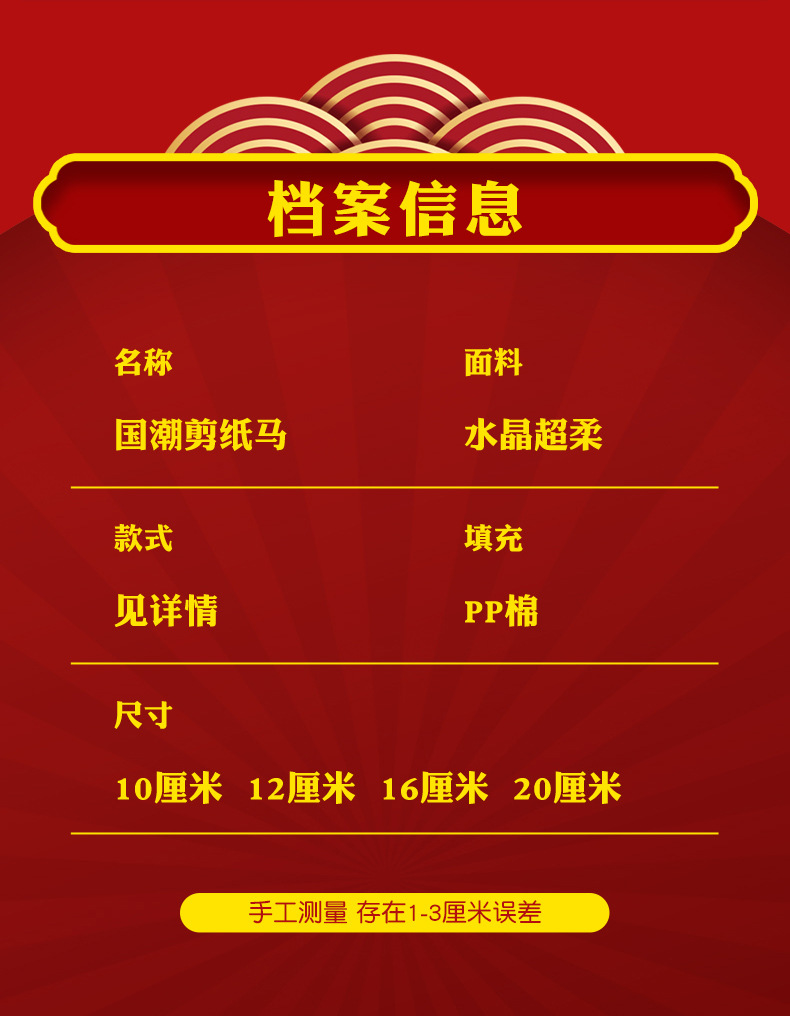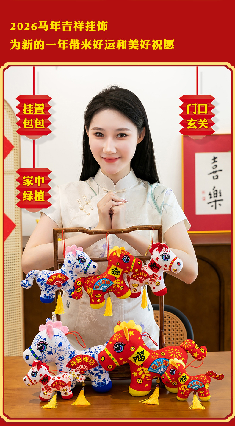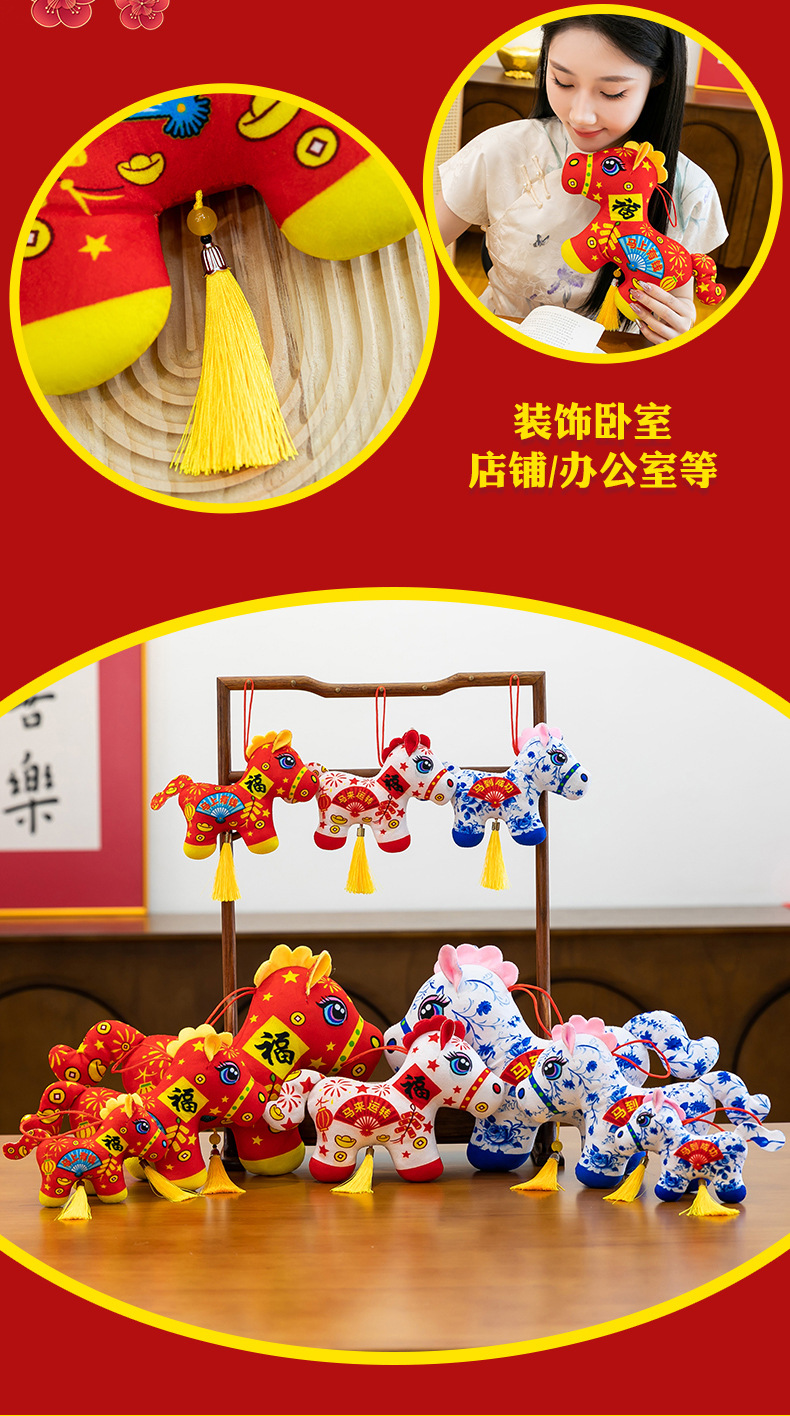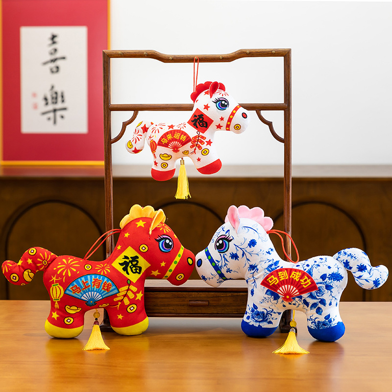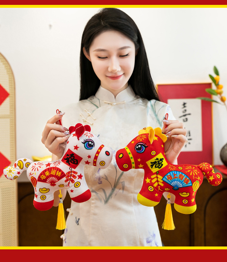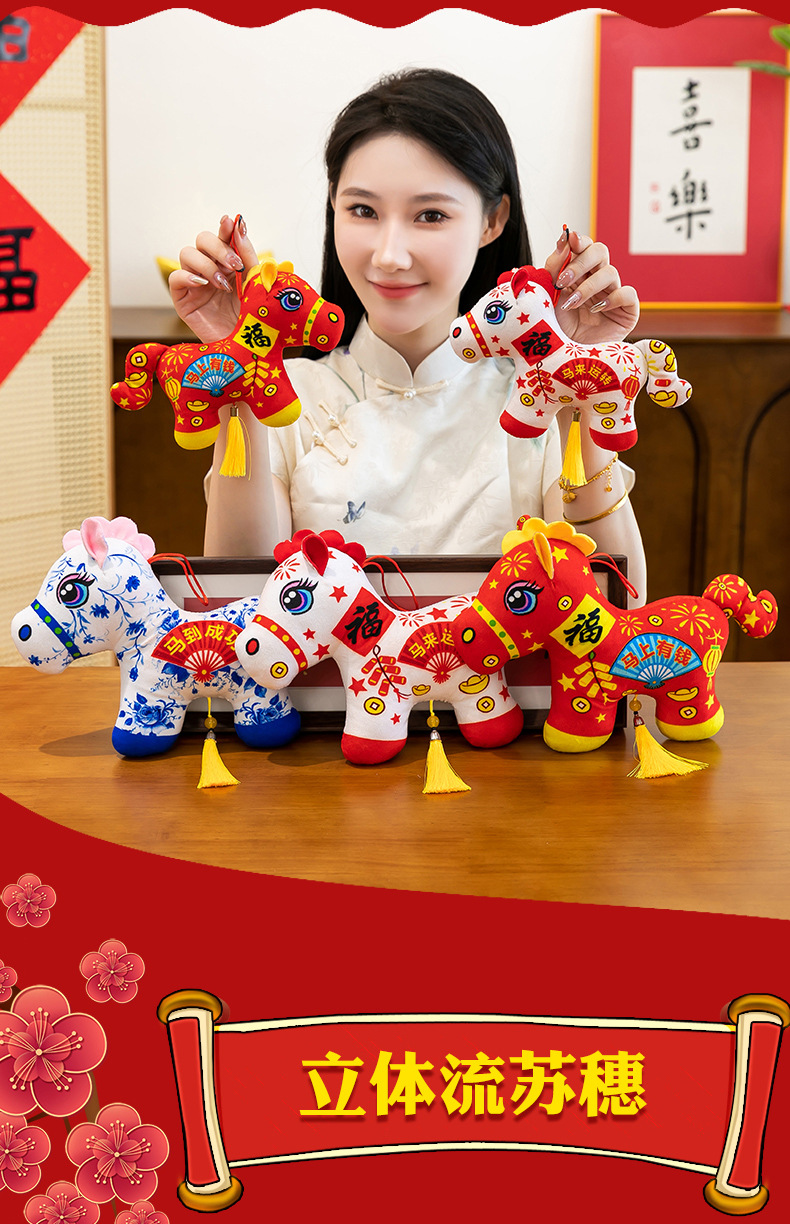 2026马年吉祥物毛绒玩具生肖剪纸小马公仔玩偶年会活动开门红摆件