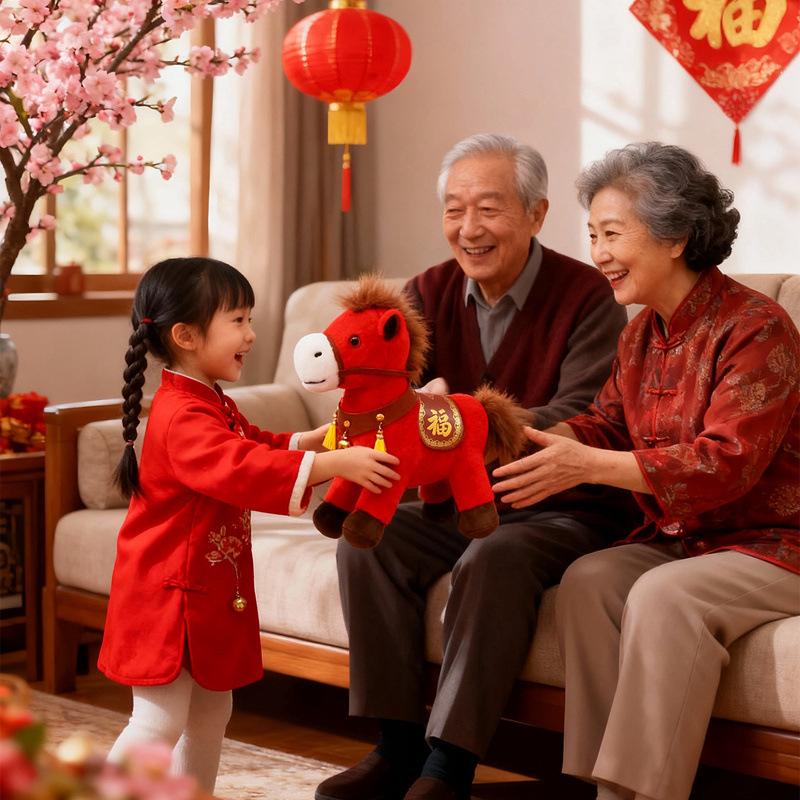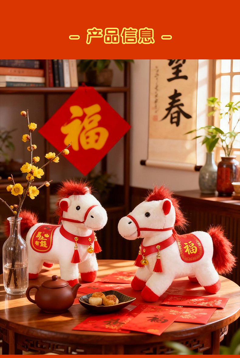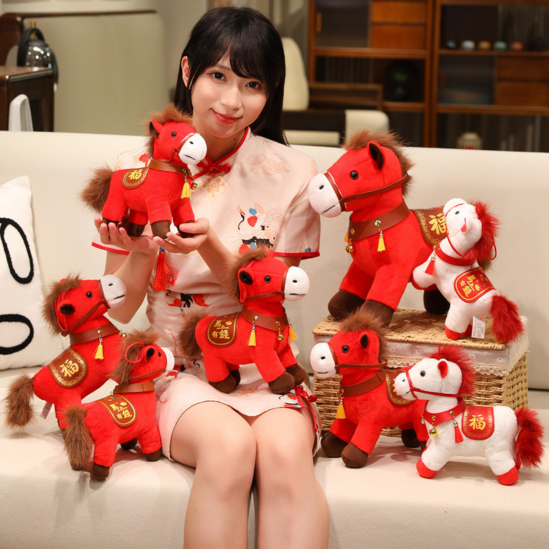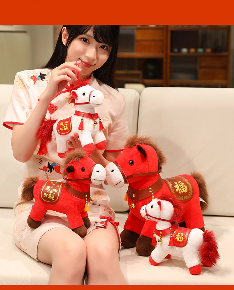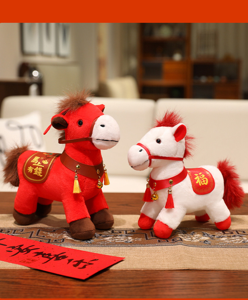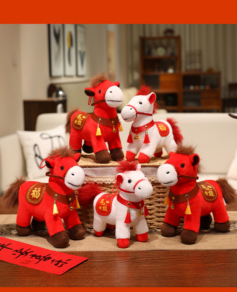 马年毛绒玩具摆件吉祥物公仔生肖小马玩偶年会活动礼物马上有福