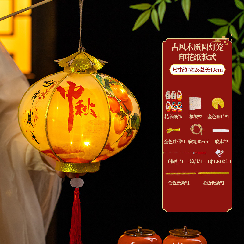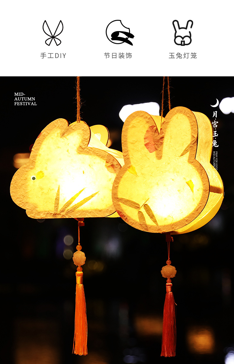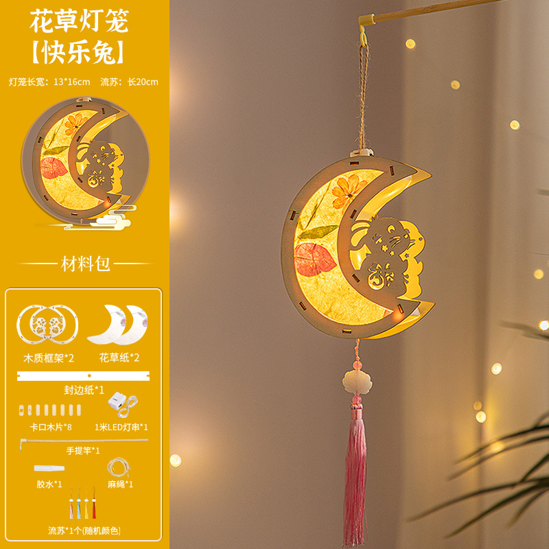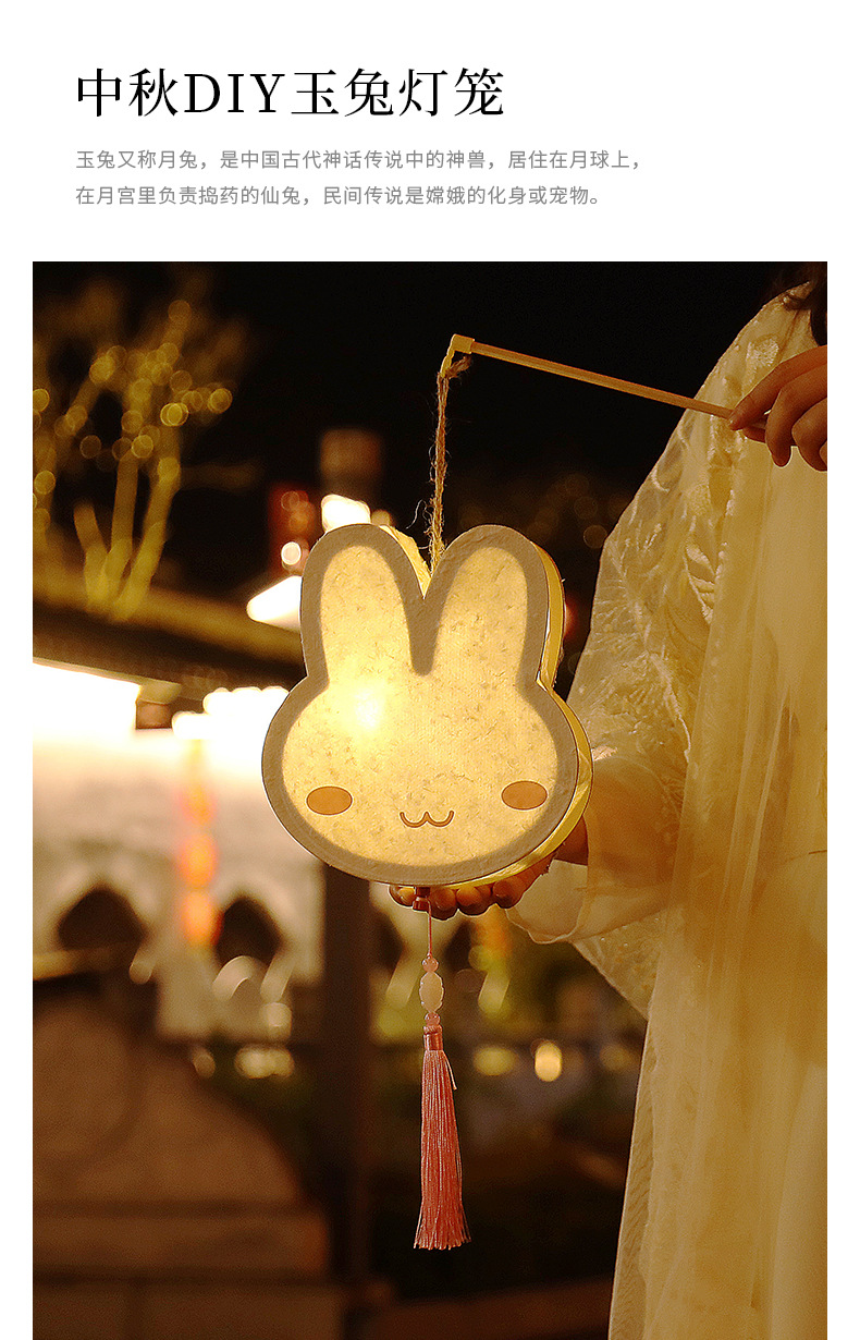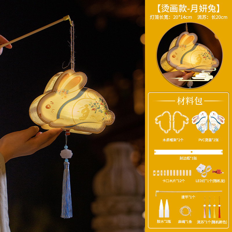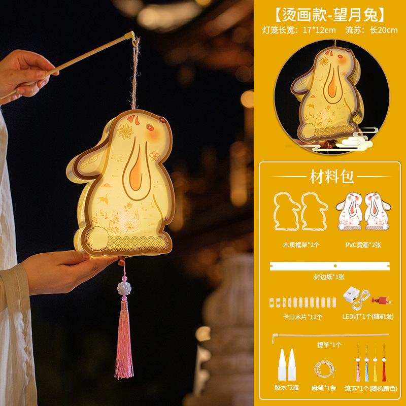 中秋节灯笼木质兔子灯儿童diy手工材料包发光古风道具手提小灯笼