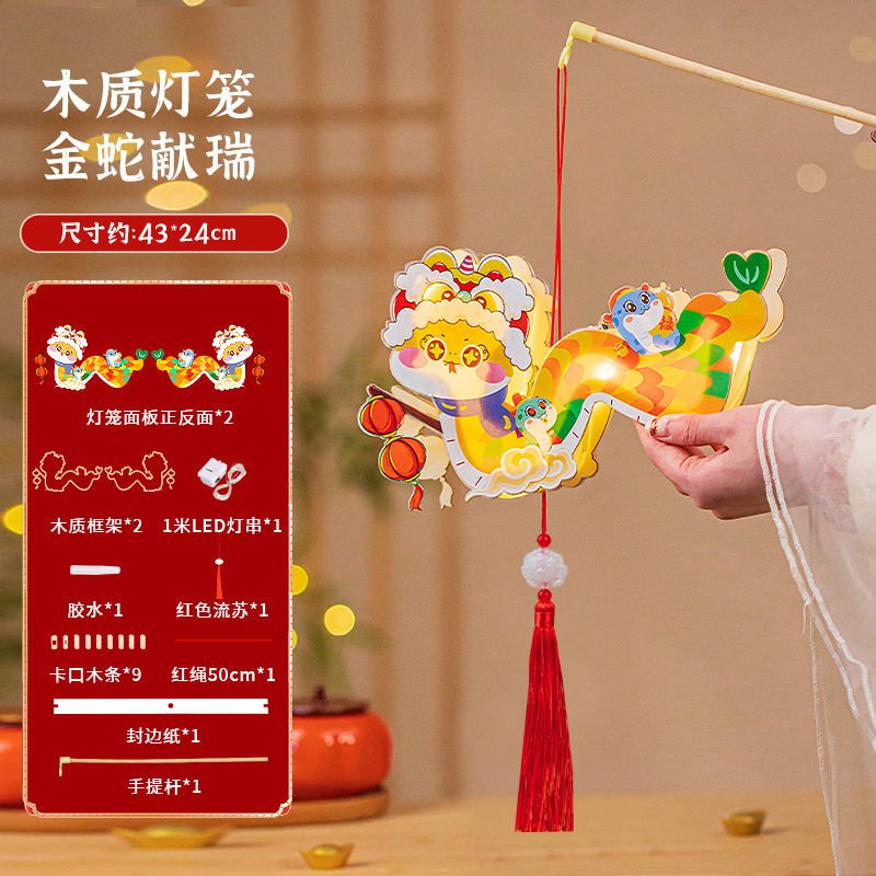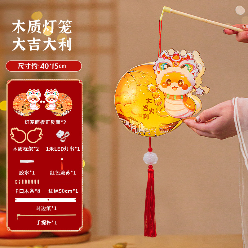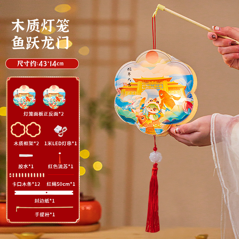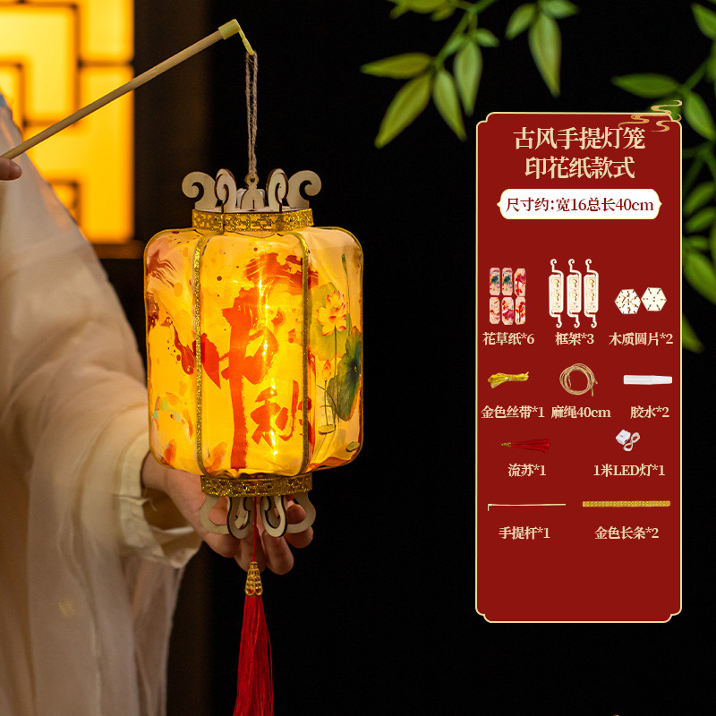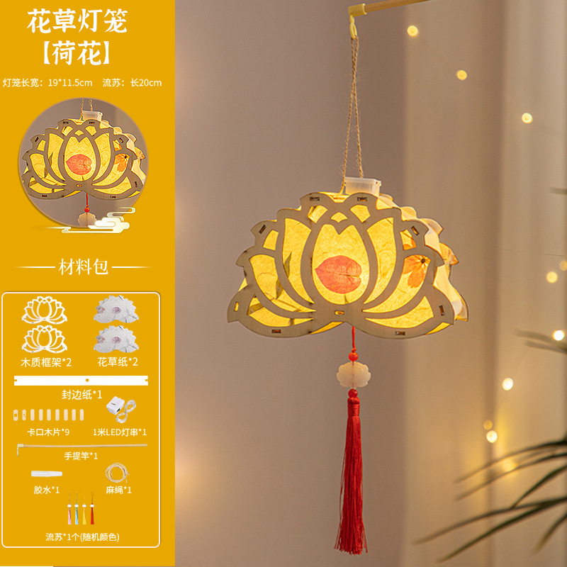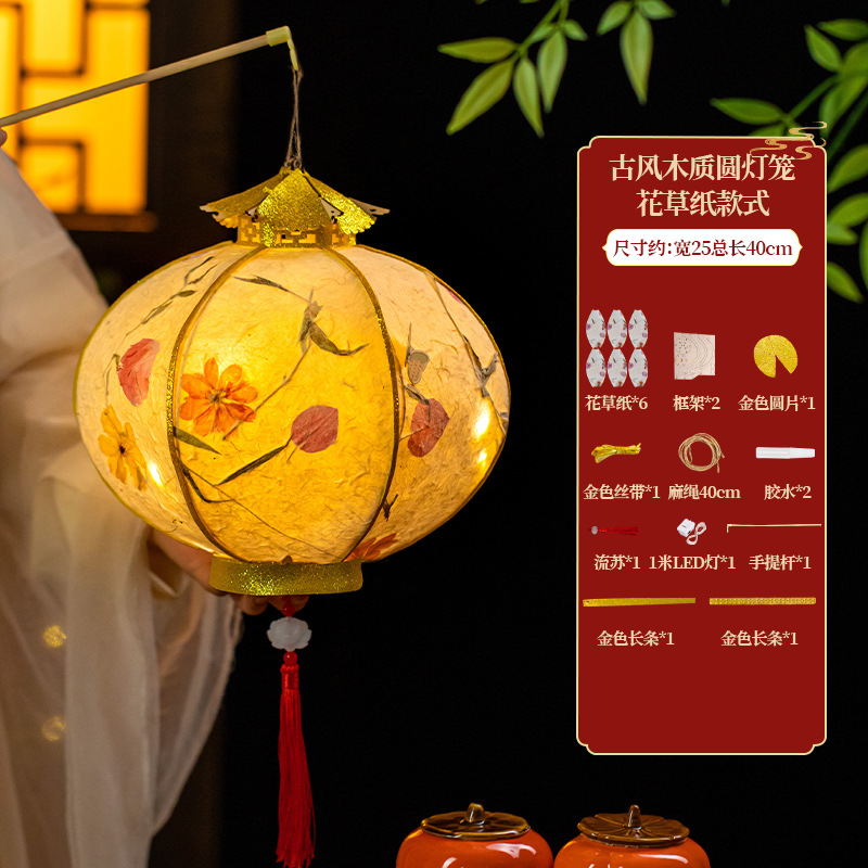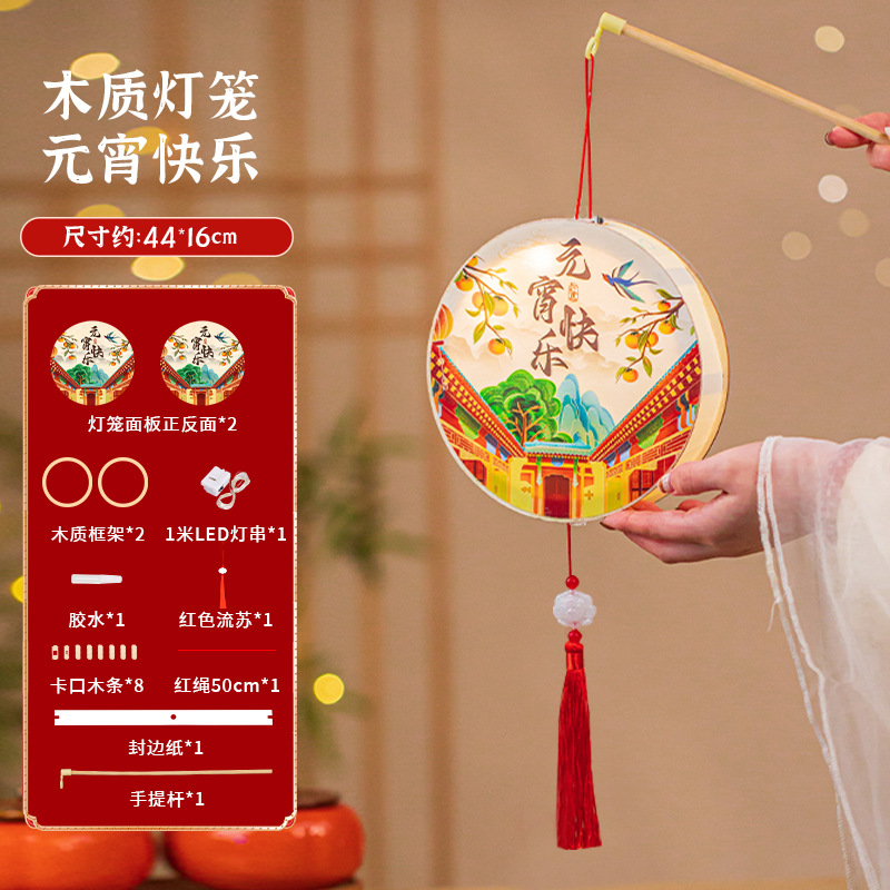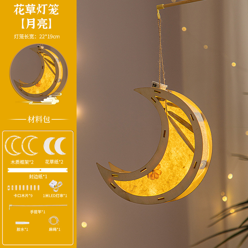 中秋节灯笼木质兔子灯儿童diy手工材料包发光古风道具手提小灯笼