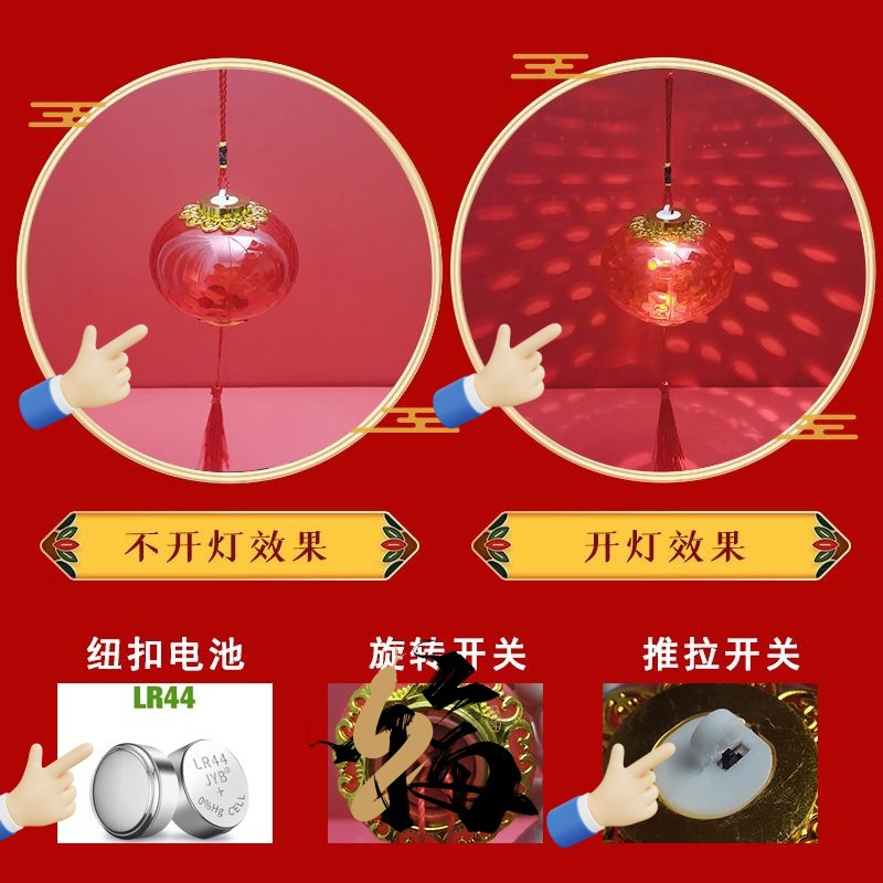 2025年春节元宵小灯笼儿童手提水晶发光投影花灯大红宫灯地摊热卖