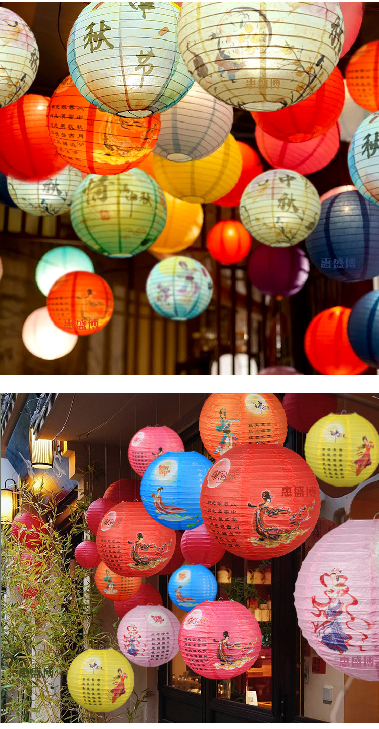 新中式国庆纸灯笼景区民宿挂饰 婚庆喜庆装饰品异形仿古国风灯笼