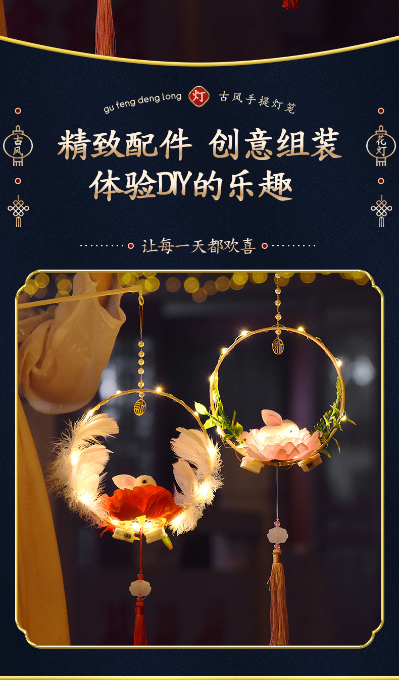 2026新年灯笼手工diy制作材料包儿童手提小花灯古风花草自制宫灯