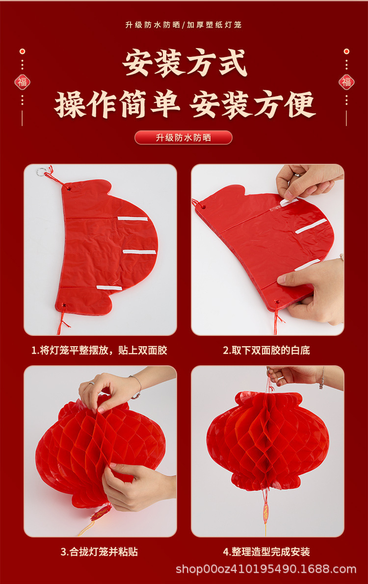 批发小红灯笼结婚庆典节日新年塑纸灯笼开业装饰商场年货纸灯笼