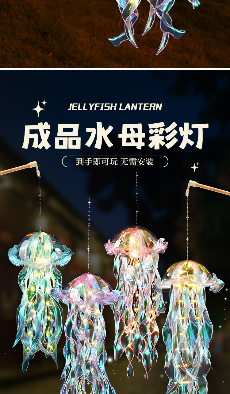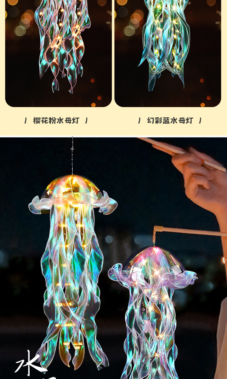 2026新款水母灯手工diy材料包夜市摆摊商品儿童春节手提发光灯笼