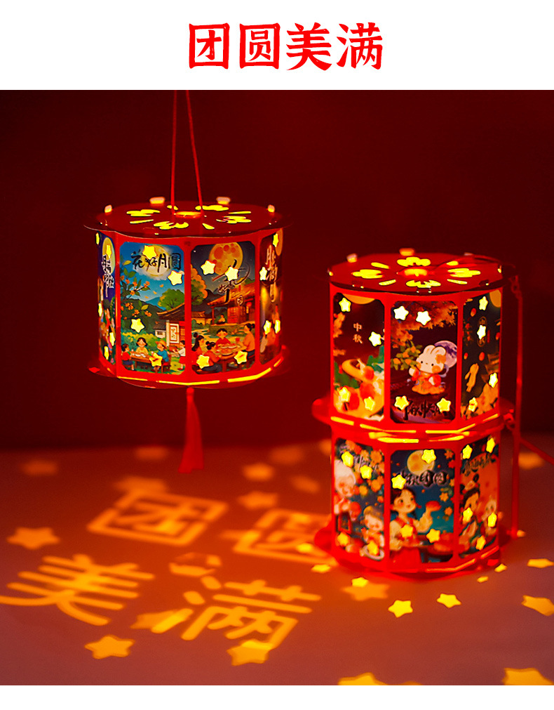 中秋节走马灯龙年小灯笼 手工diy材料包儿童手工制作手提发光玩具