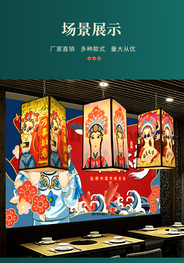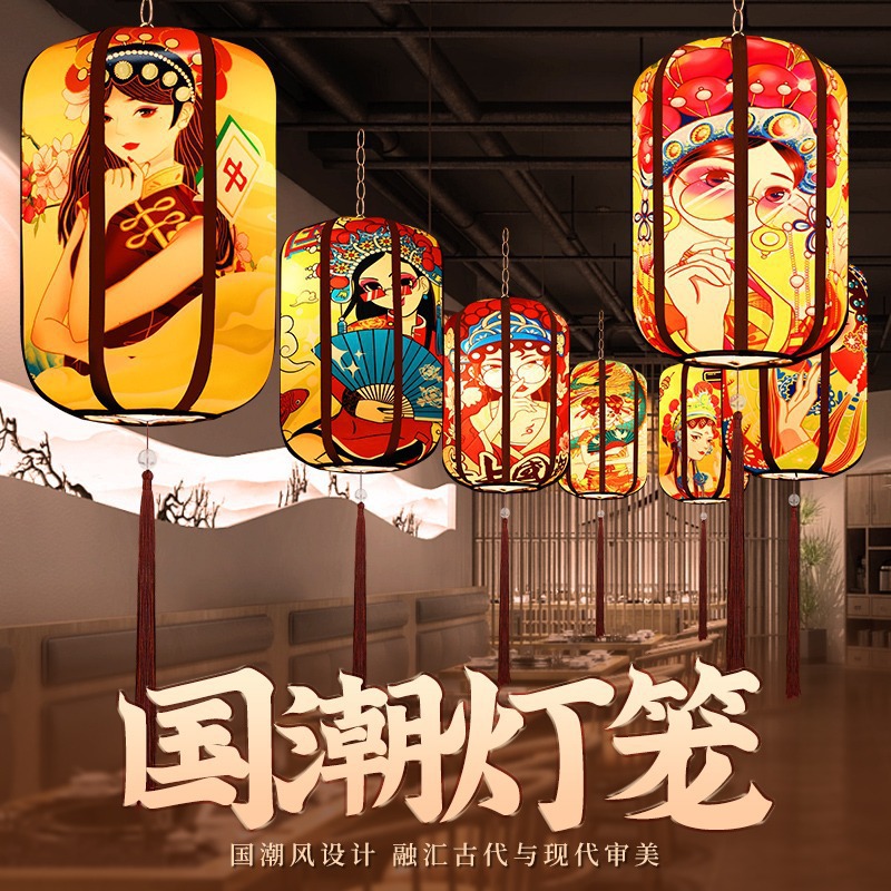 国潮风吊灯中式火锅店餐厅中国风饭店民宿酒店烧烤店京剧古风灯笼