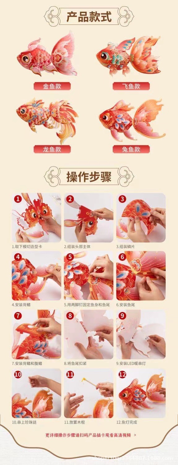 玲珑鱼灯手工diy非遗中秋节新款儿童动手制作材料包手提发光灯笼
