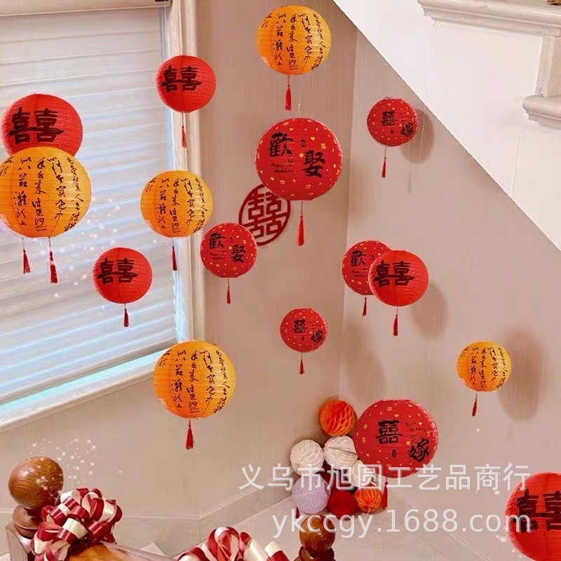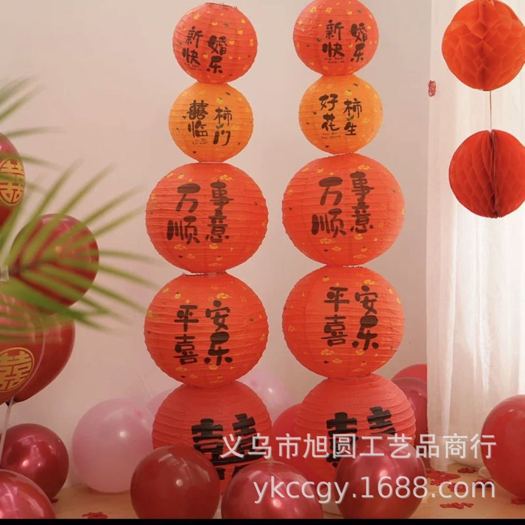 结婚红色喜字灯笼节庆国风立柱装饰灯婚庆福字灯笼挂饰