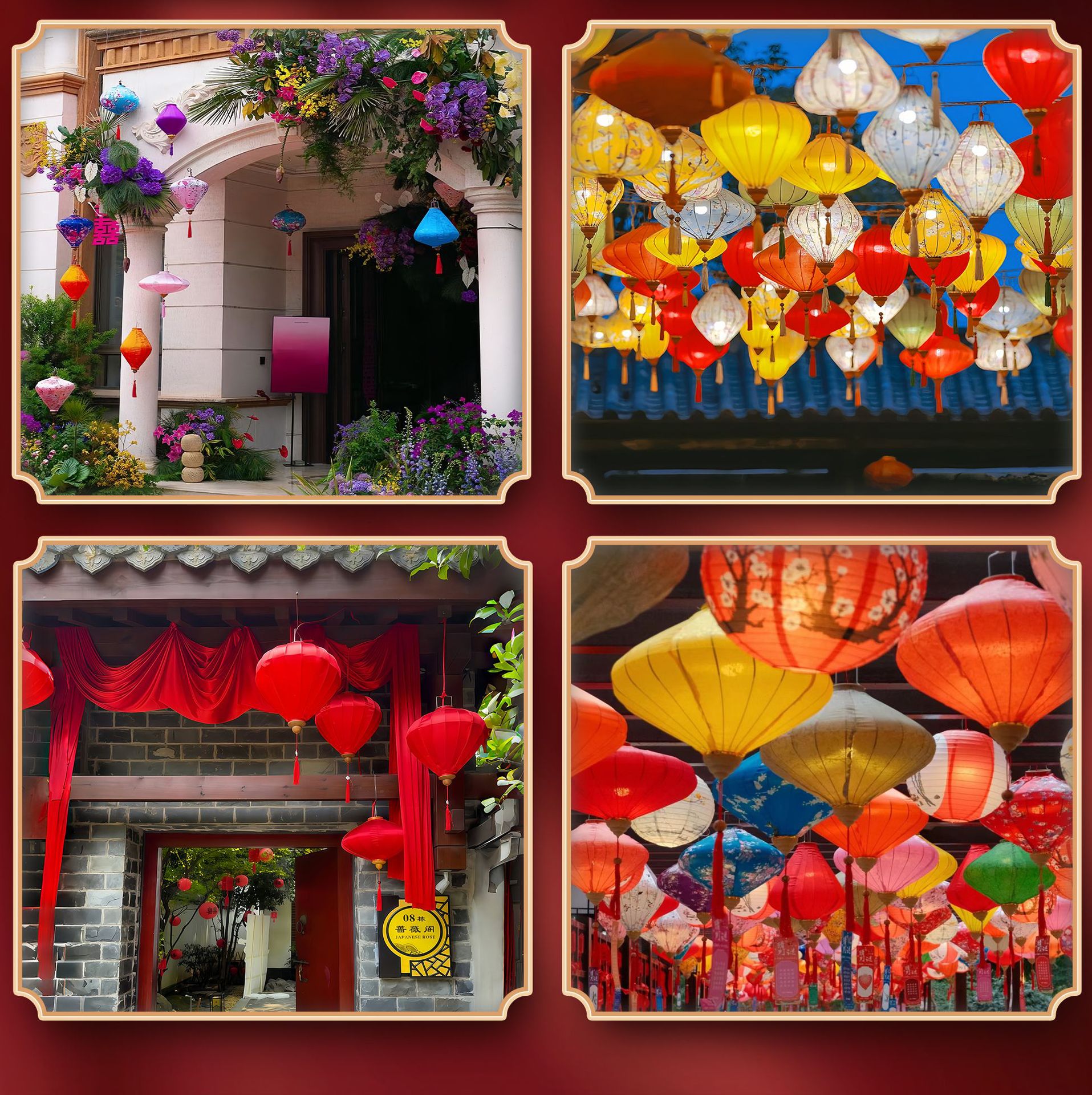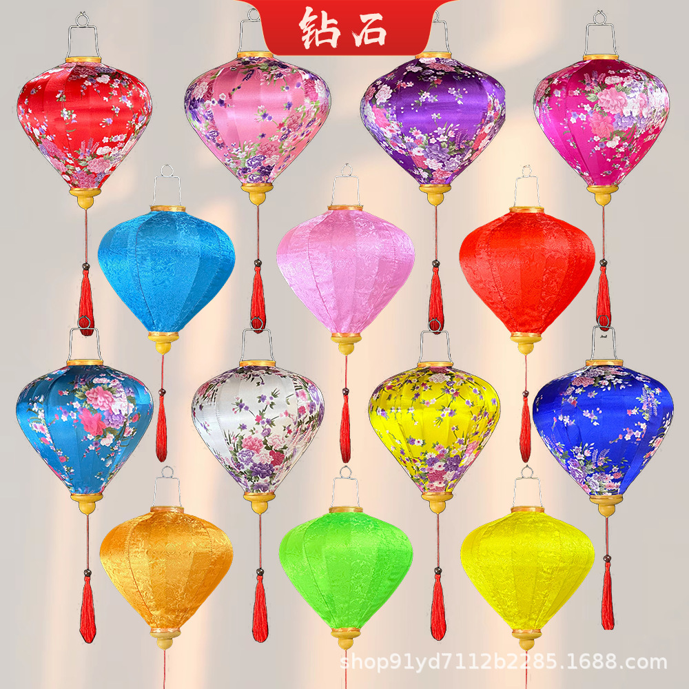 户外古风灯笼网红景区古镇美食街中国风婚礼装饰绸缎异形越南灯笼