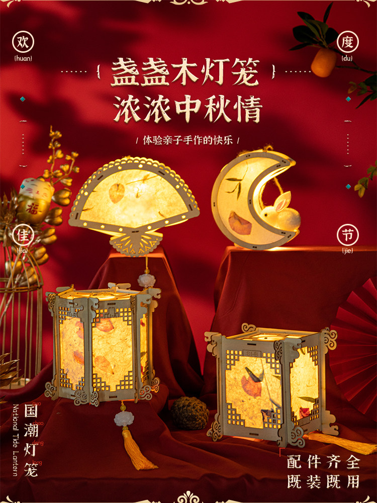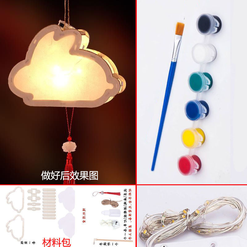 中秋节灯笼手diy材料包手提古风花灯挂件儿童汉服宫灯发光宫灯