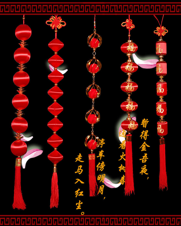新年小灯笼丝光连串小红灯笼批发春节室内装饰挂件挂饰户外过年