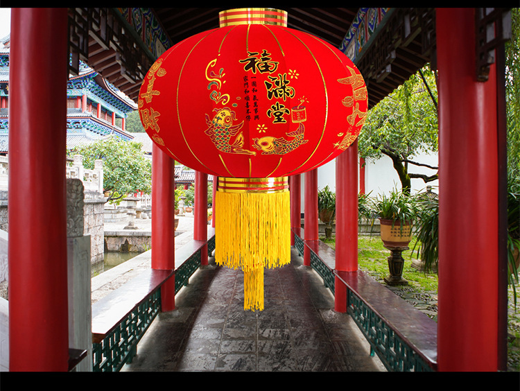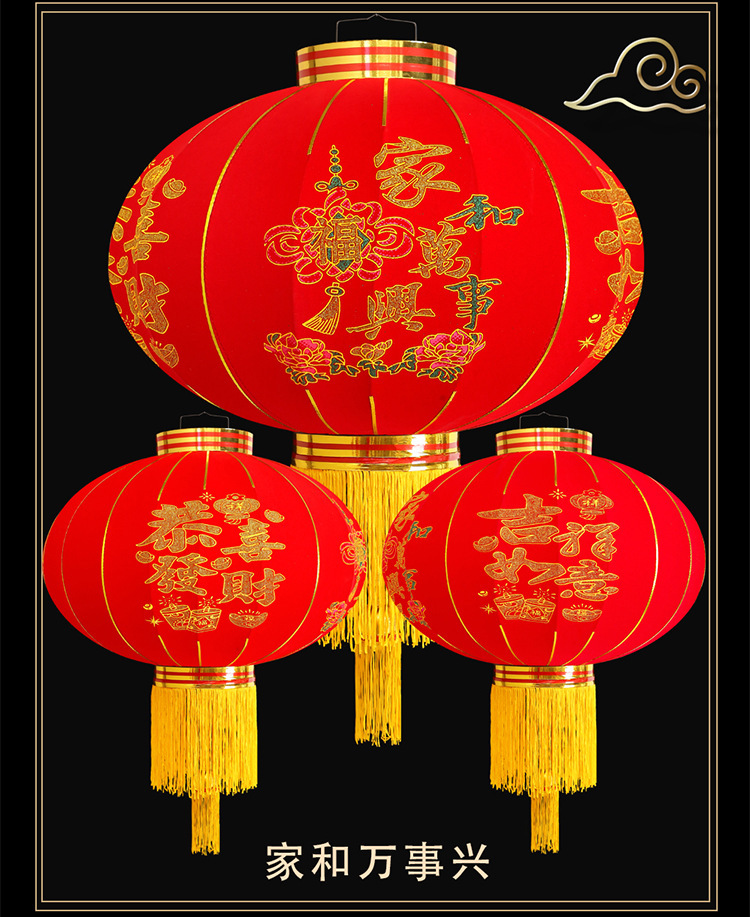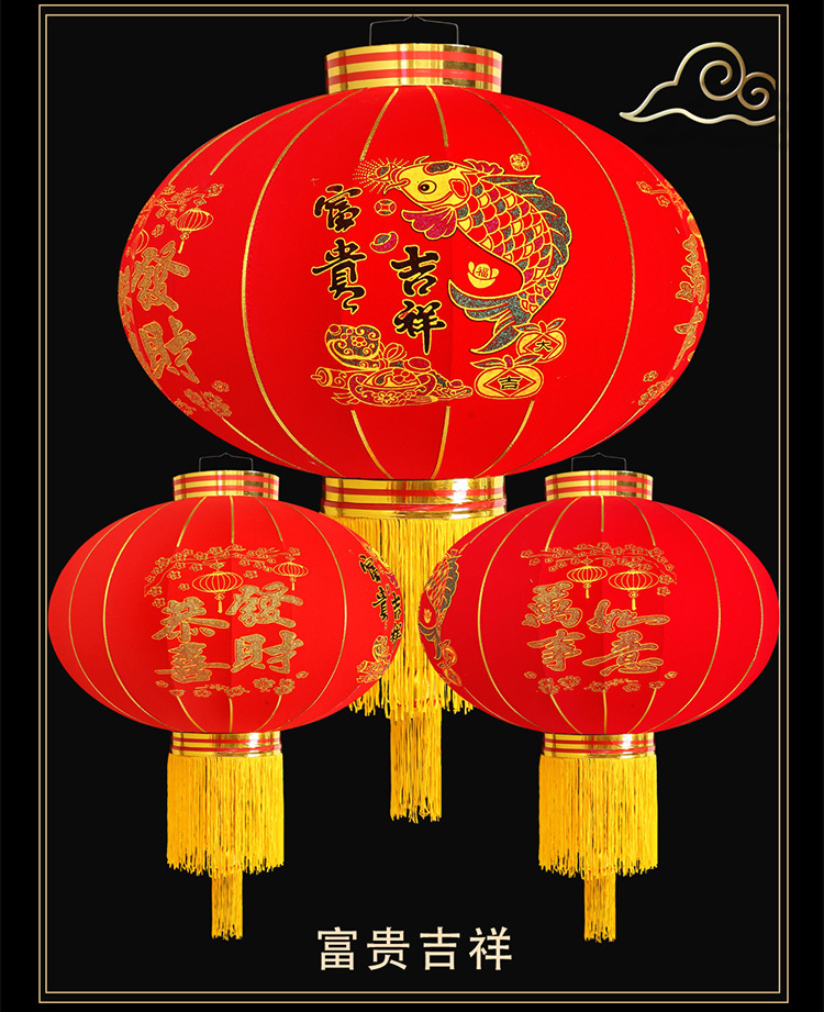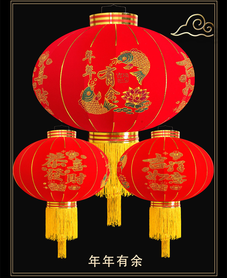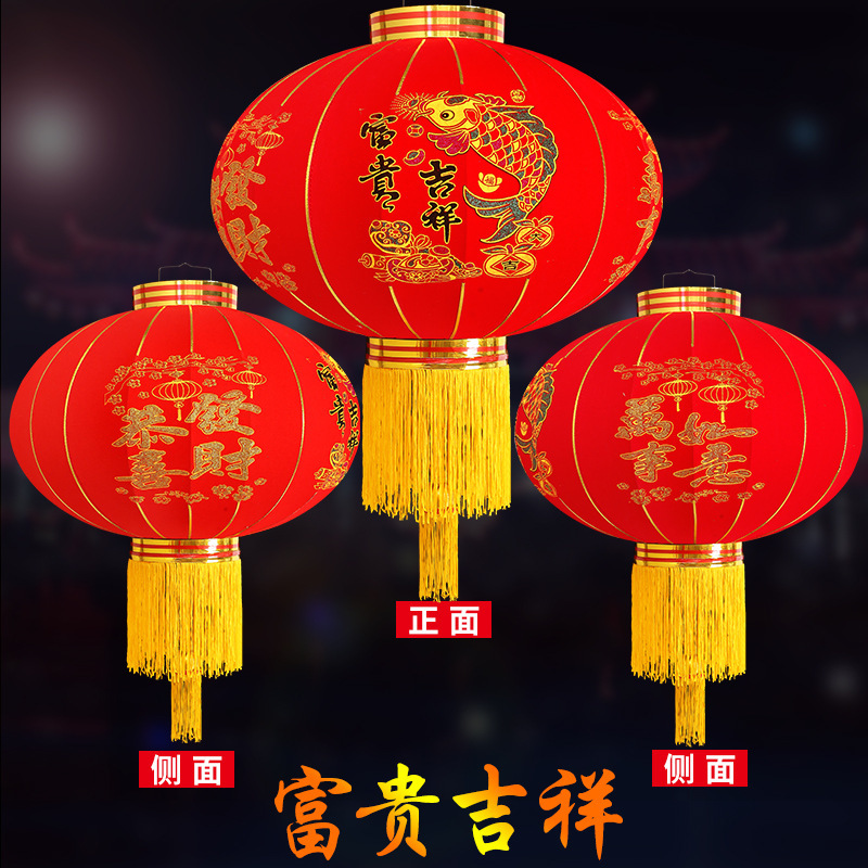 新年大红灯笼春节绒布喜庆装饰户外乔迁大门阳台植绒灯笼福字宫灯