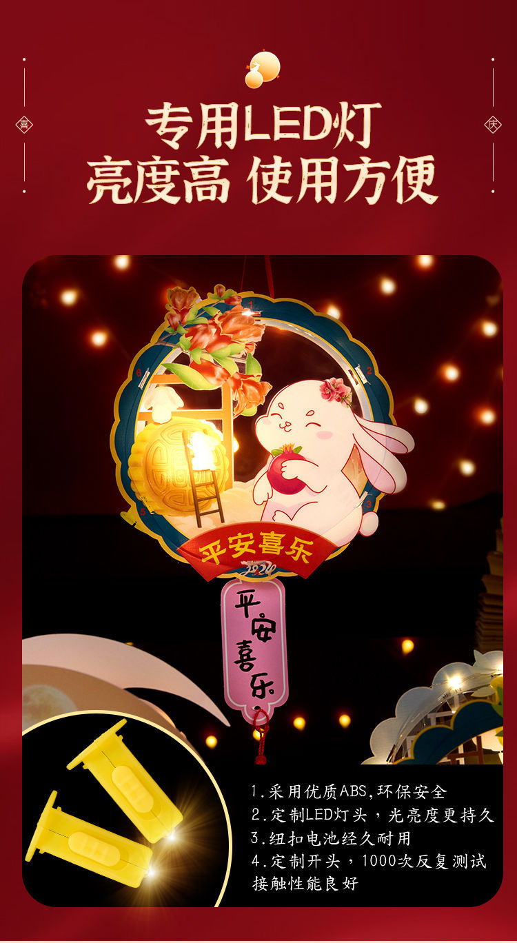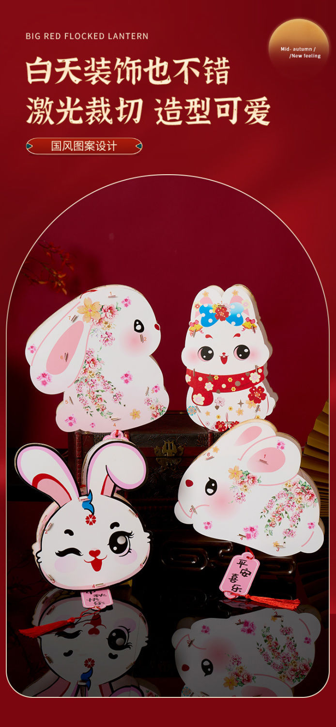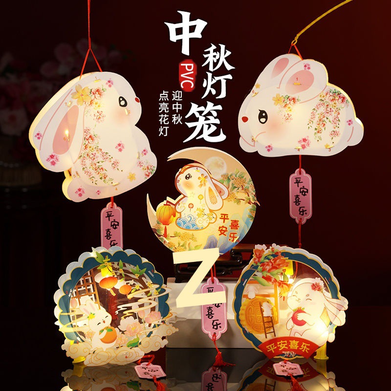2025中秋节兔子灯笼儿童玉兔diy手工材料包手提发光古风花灯夜市