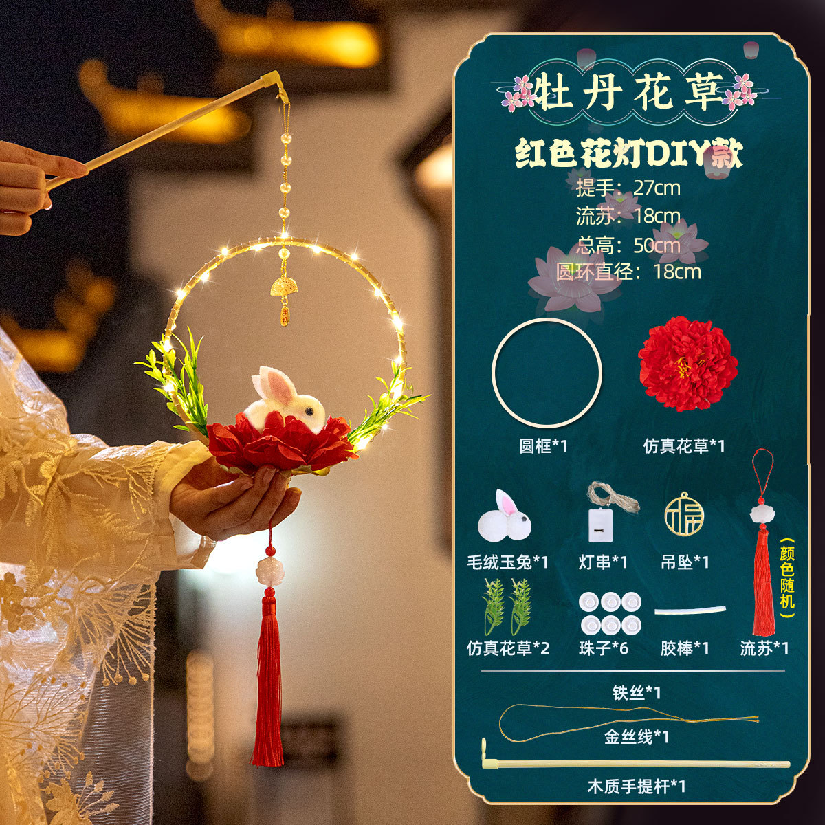 新年小兔子莲花灯手工灯笼幼儿园儿童手工diy材料包古风手提花灯