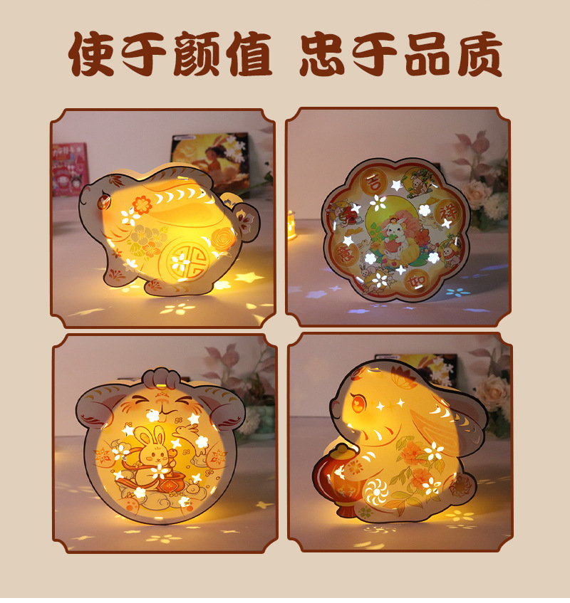 中秋节灯笼儿童手工创意制作diy材料包古风手提纸质新款兔子花灯