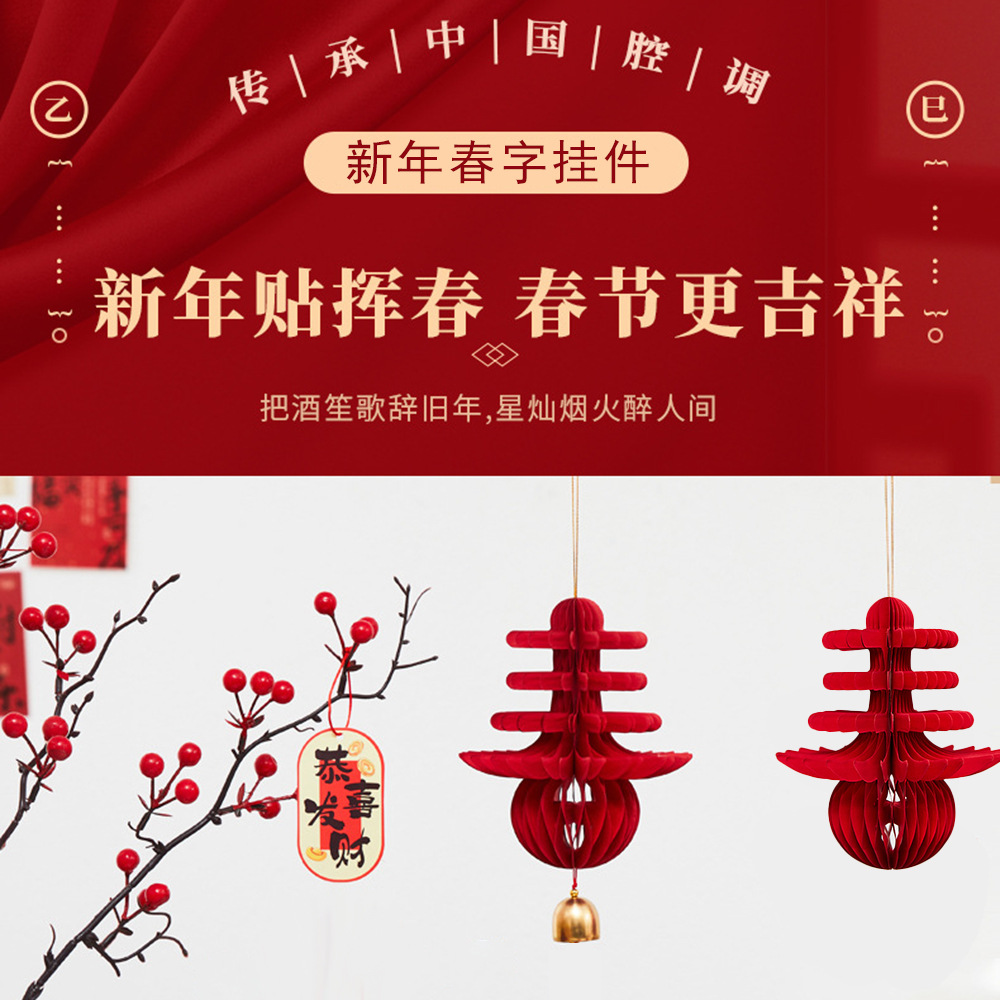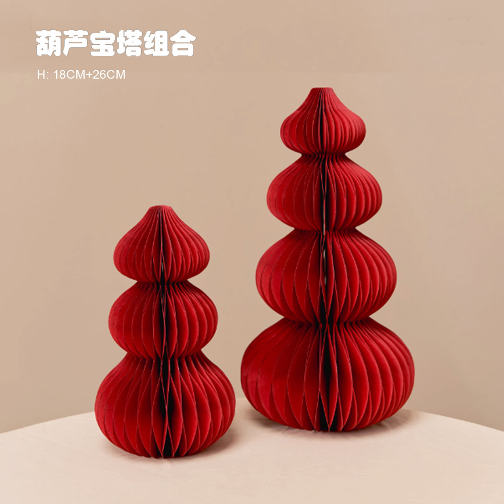 春节灯笼新年挂饰 葫芦小摆件蜂窝灯笼乔迁之喜红色折纸灯笼diy