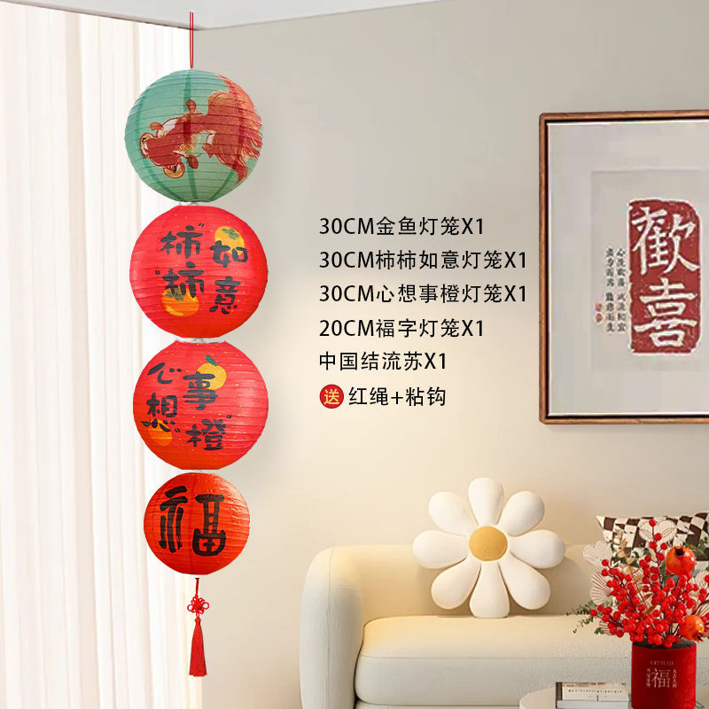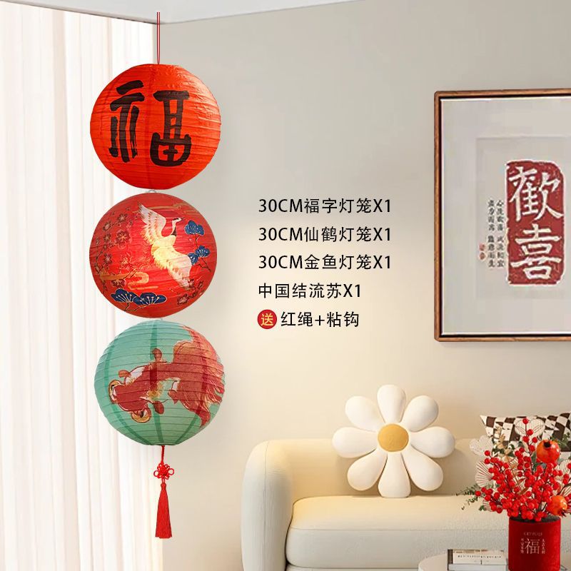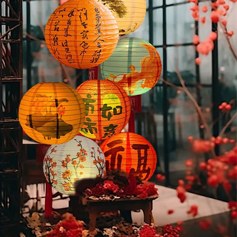 2025新款拉丝油纸灯笼幼儿园商场国风氛围装饰中国风拍照创意装饰