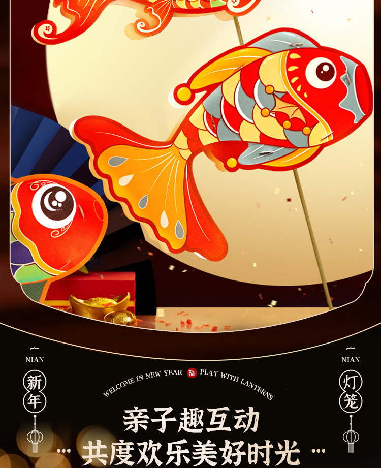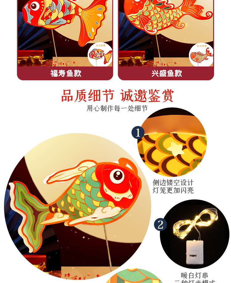 马年灯笼发光鱼灯创意手工diy材料包儿童新年手提古风鱼灯笼批发
