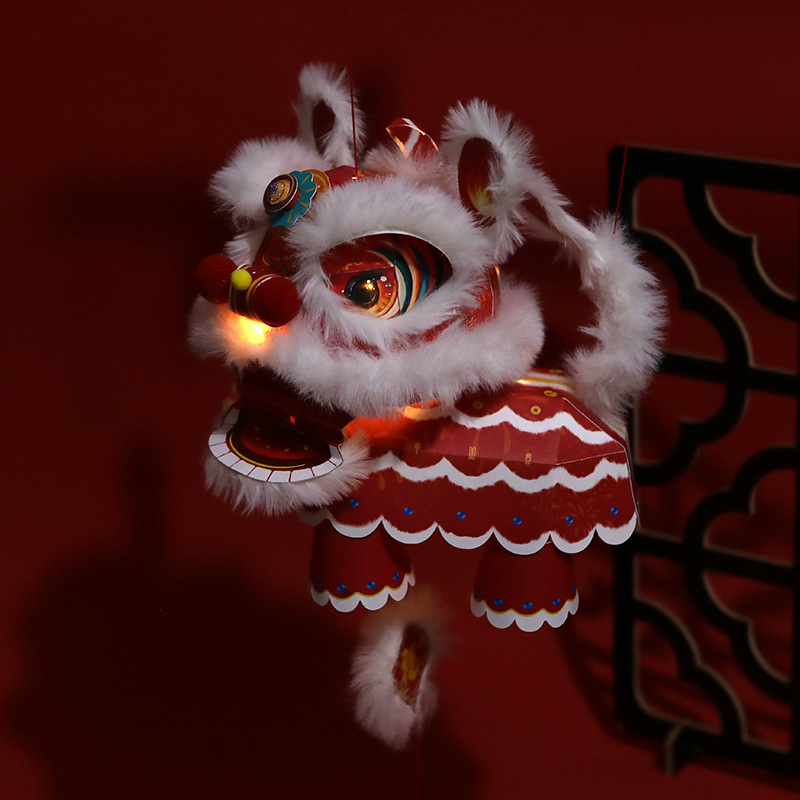 2026新春新款舞狮手提花灯diy手工材料包元宵卡通醒狮道具灯笼