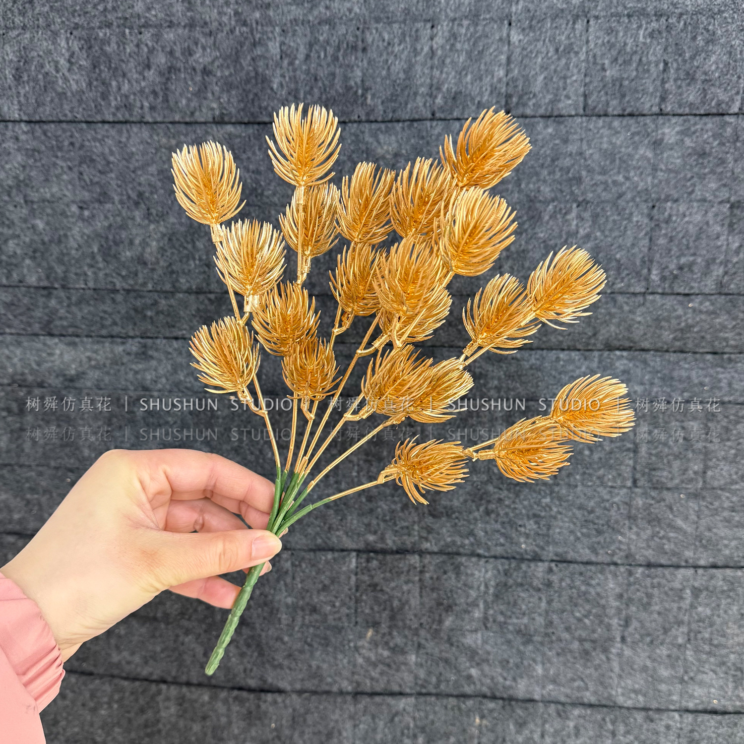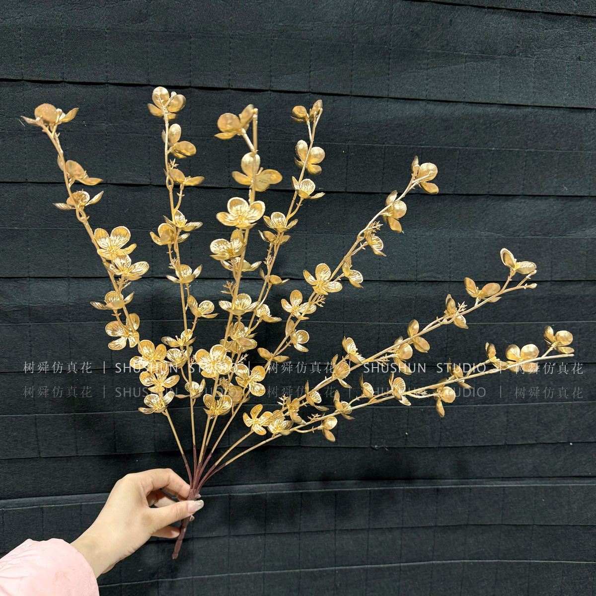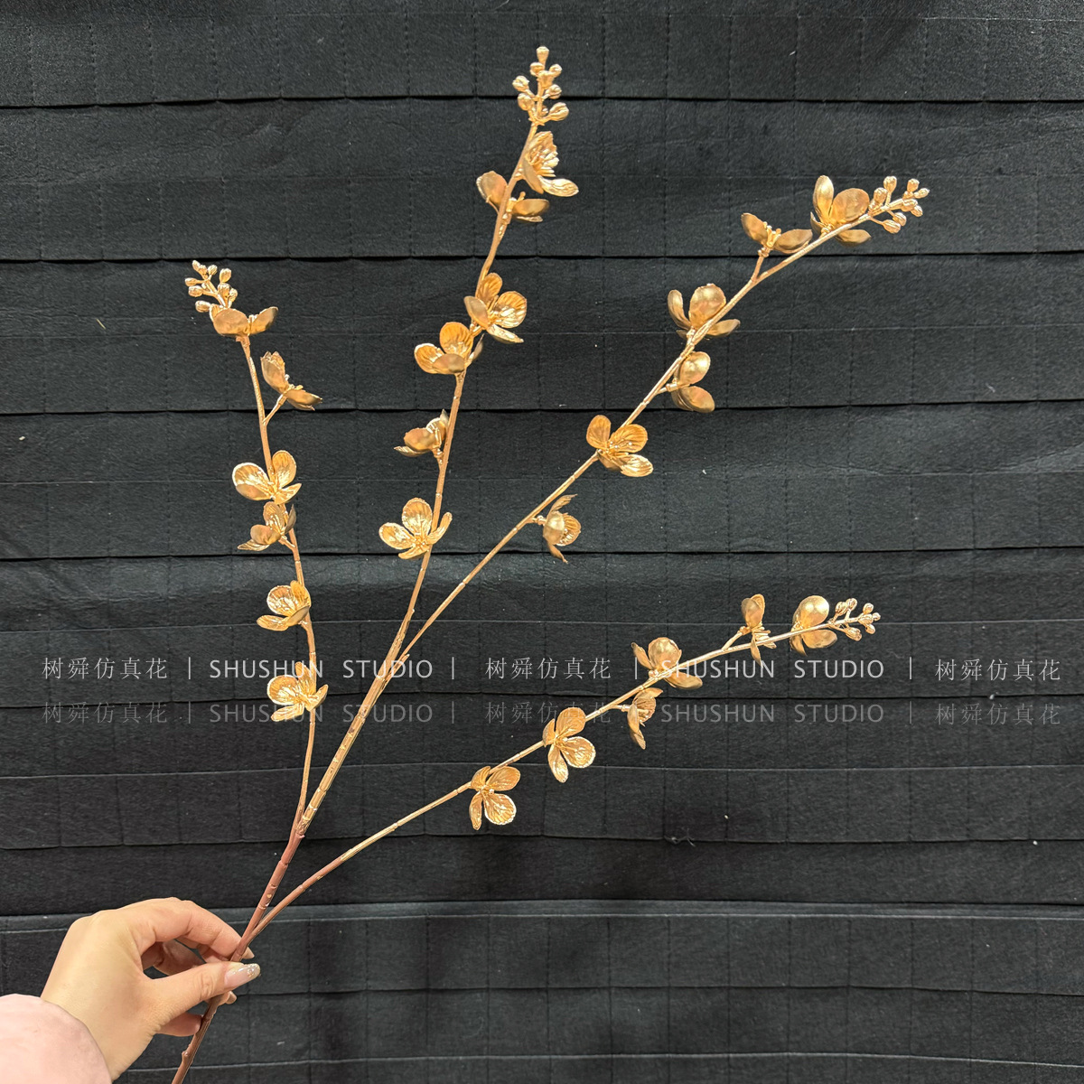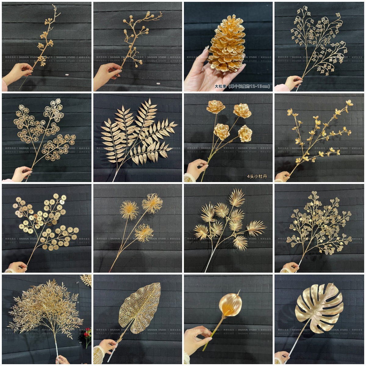 年宵花金色仿真花金色尤加利绣球金扇子银杏叶福桶插花叶子塑料花