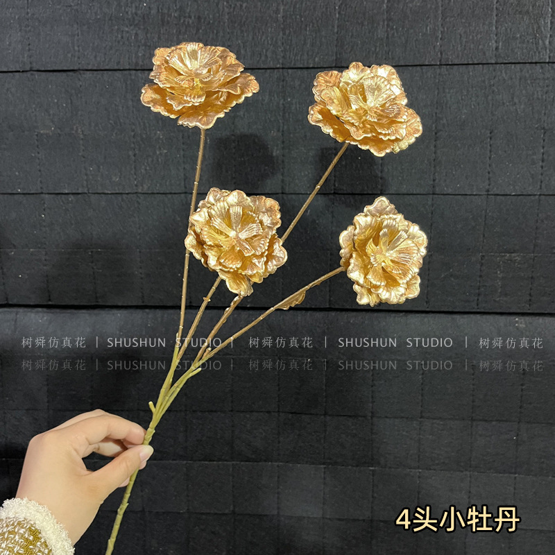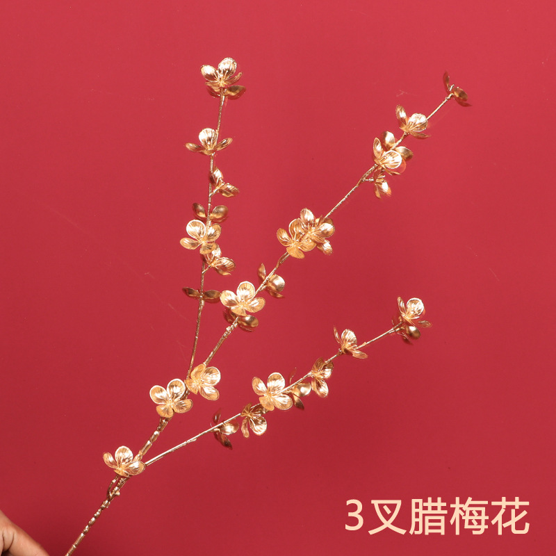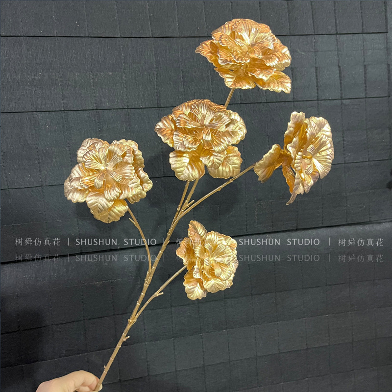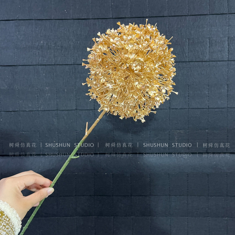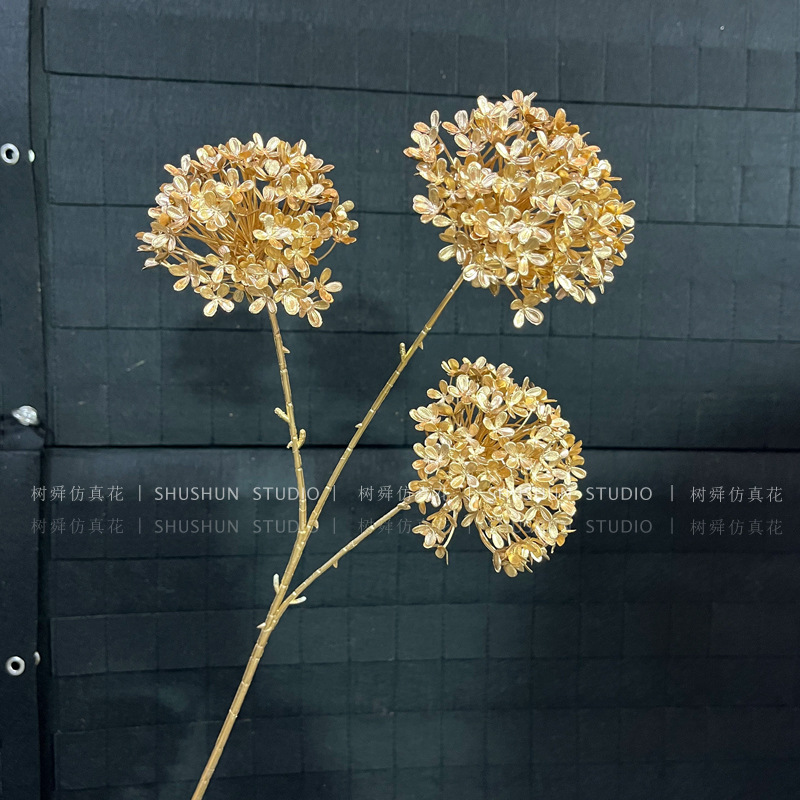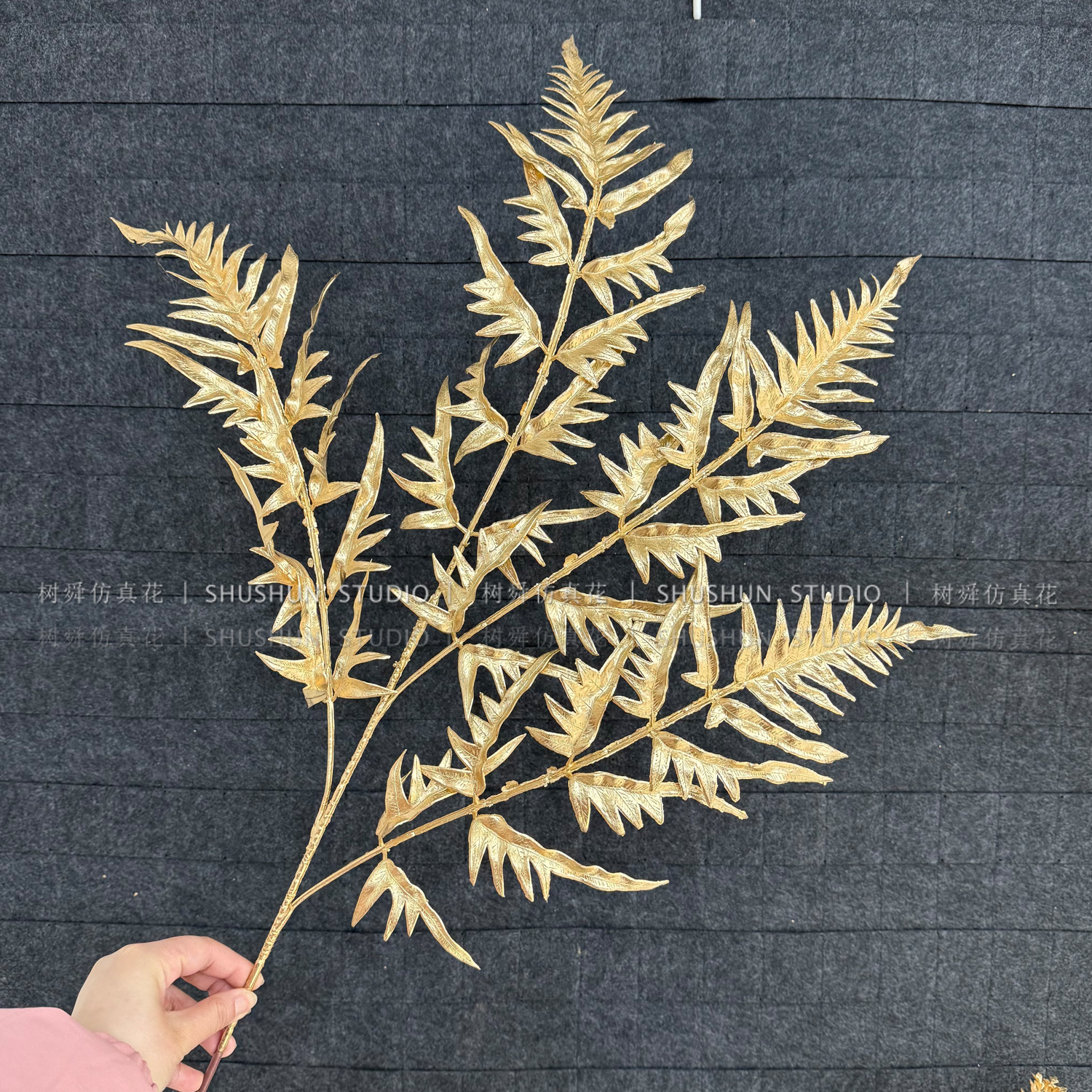 年宵花金色仿真花金色尤加利绣球金扇子银杏叶福桶插花叶子塑料花