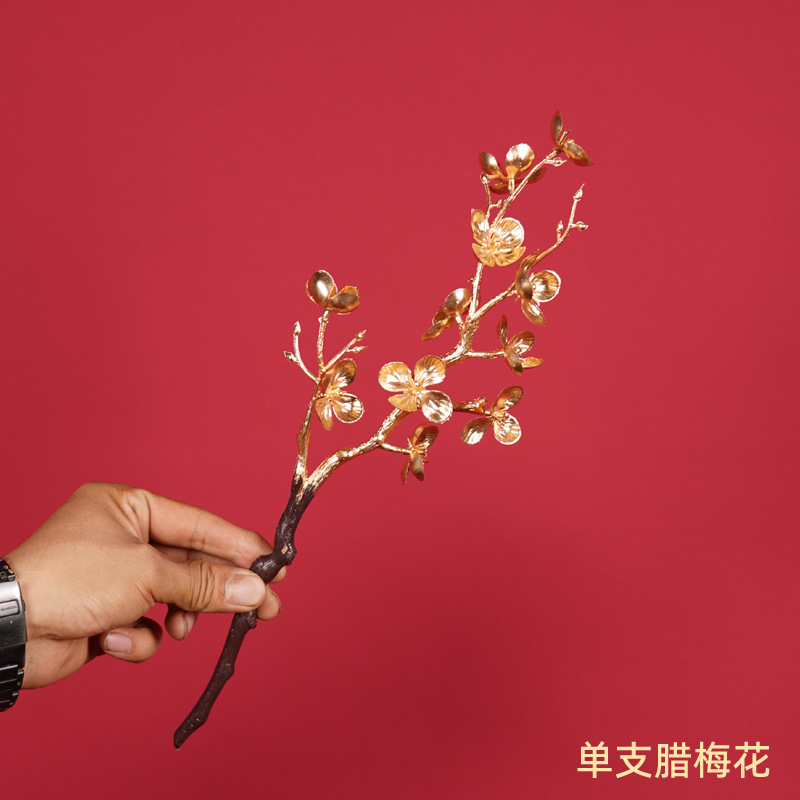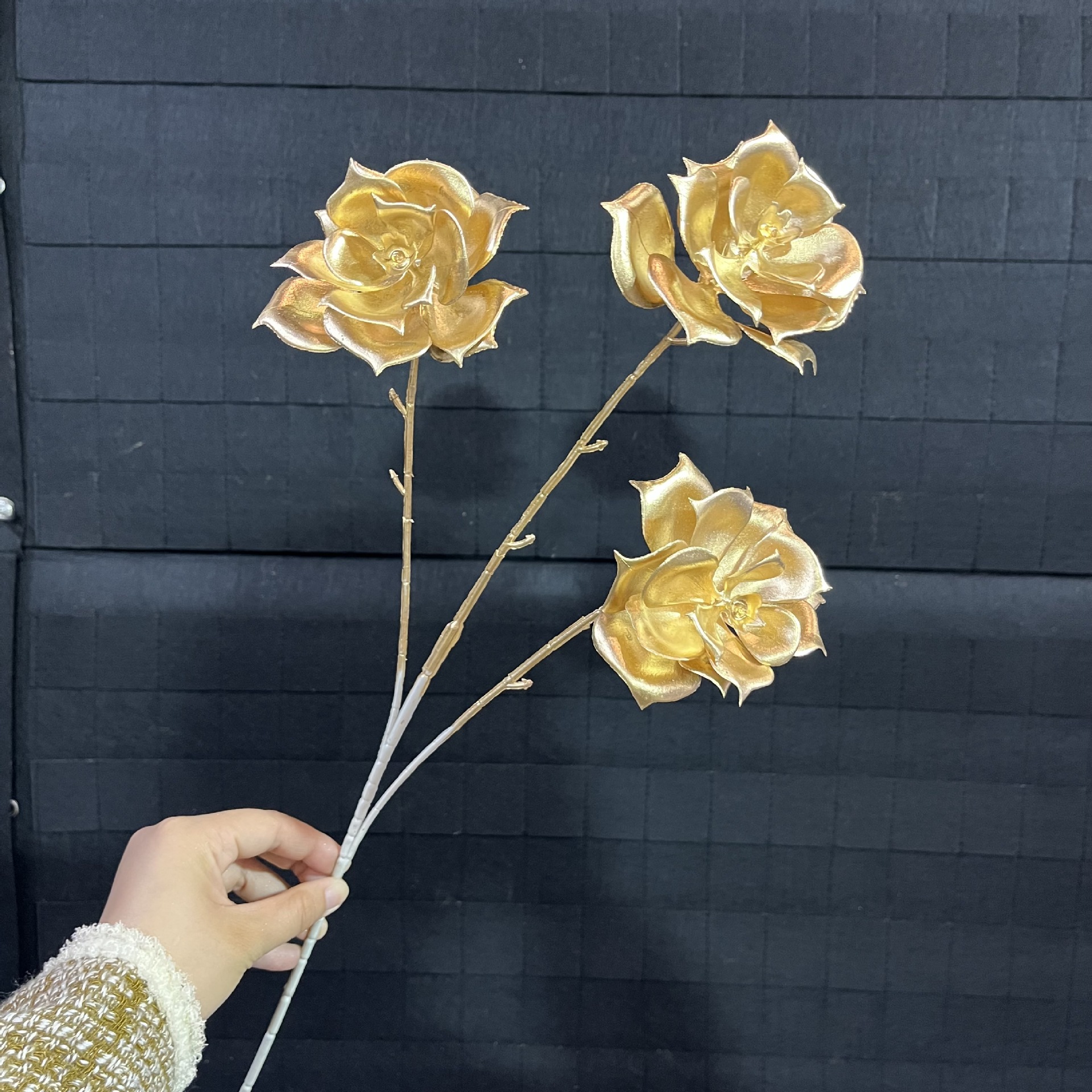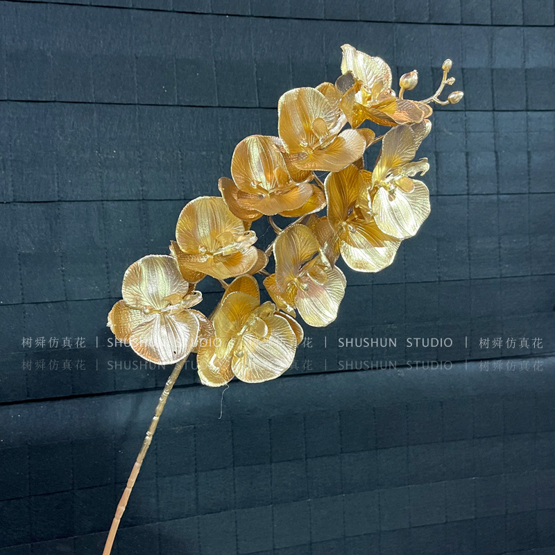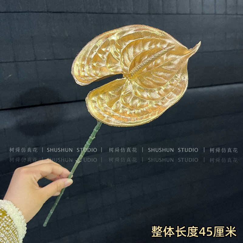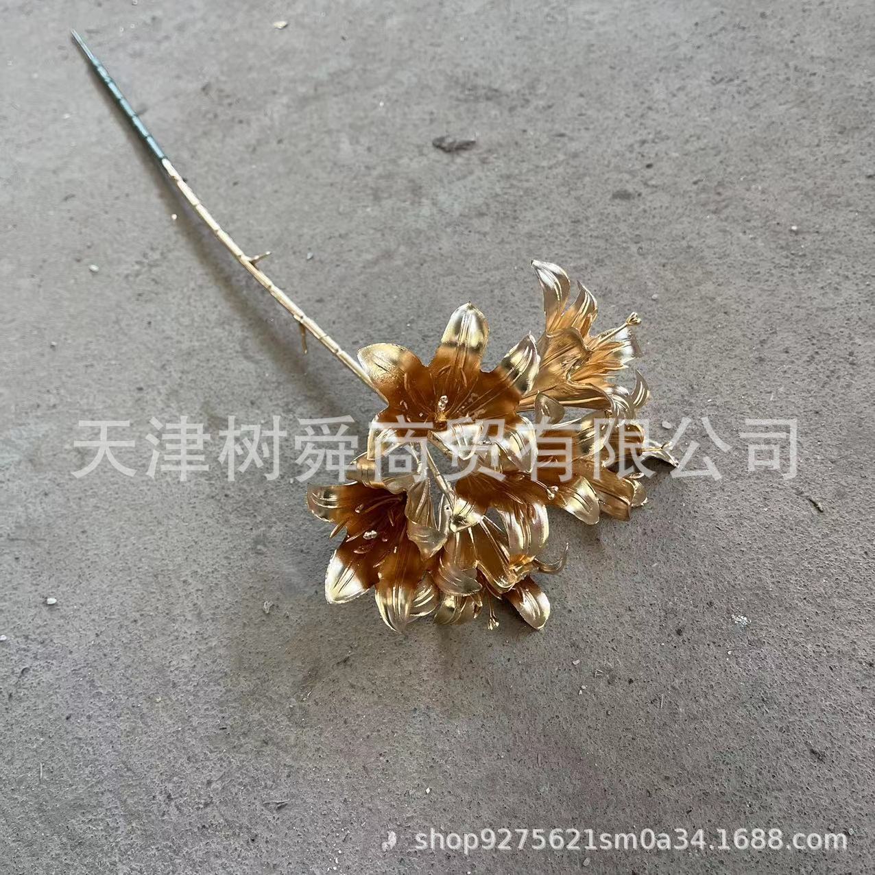 年宵花金色仿真花金色尤加利绣球金扇子银杏叶福桶插花叶子塑料花