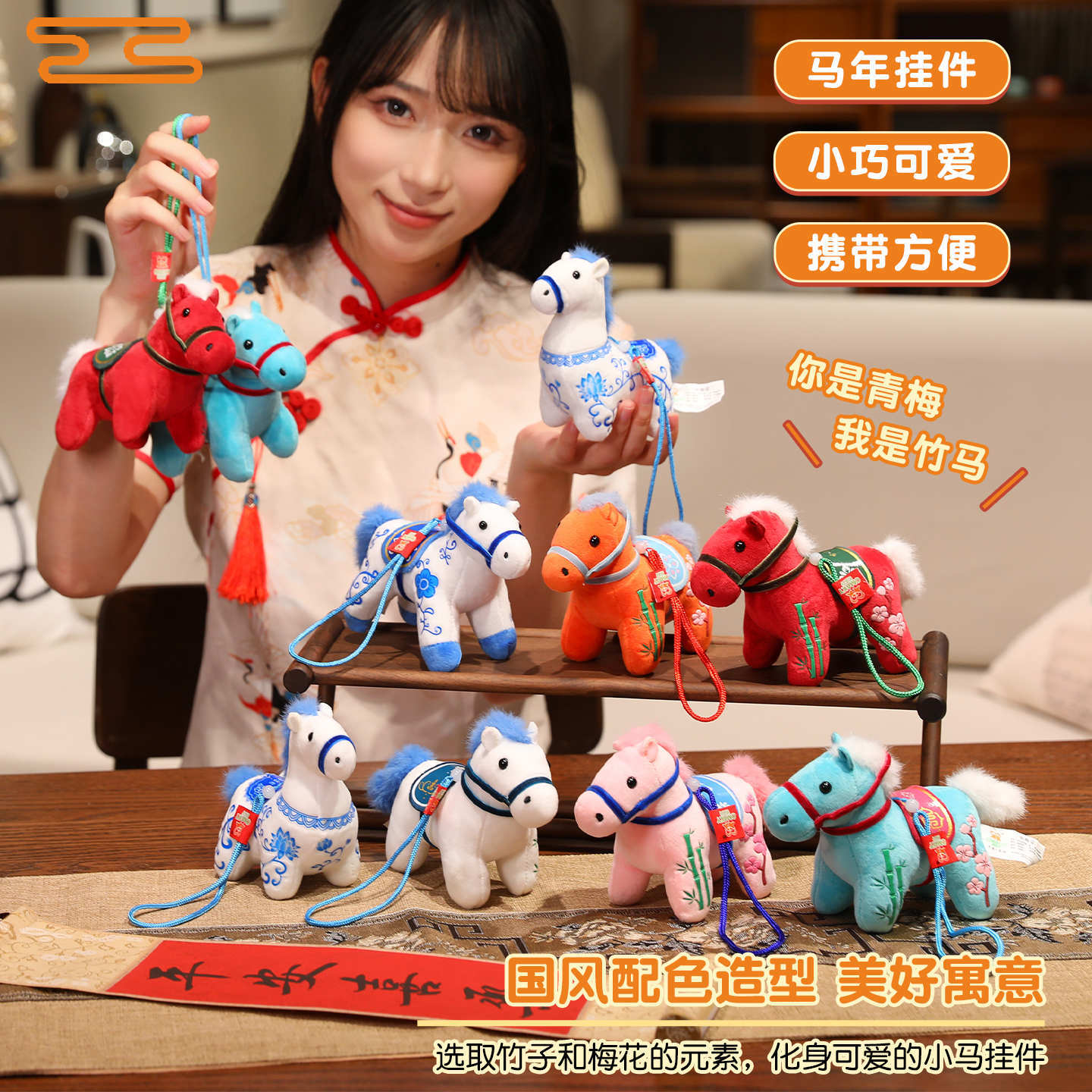 可爱小马钥匙扣挂件马上有钱玩偶马年吉祥物毛绒玩具书包背包挂饰