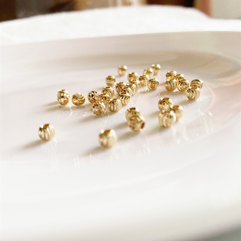 14K包金切面空心西瓜珠 DIY手工饰品配件 金色南瓜纹灯笼保色圆珠