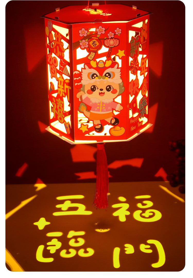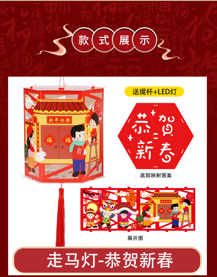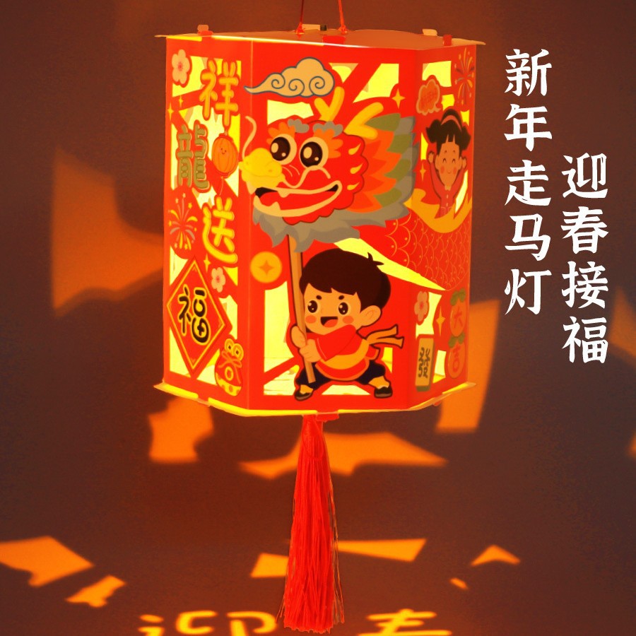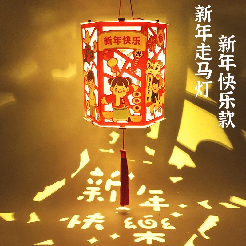 元旦节新年儿童花灯走马灯手提手工灯笼自制材料包diy旋转花灯