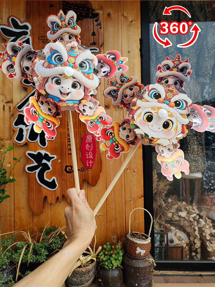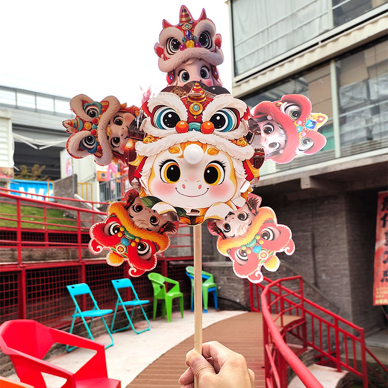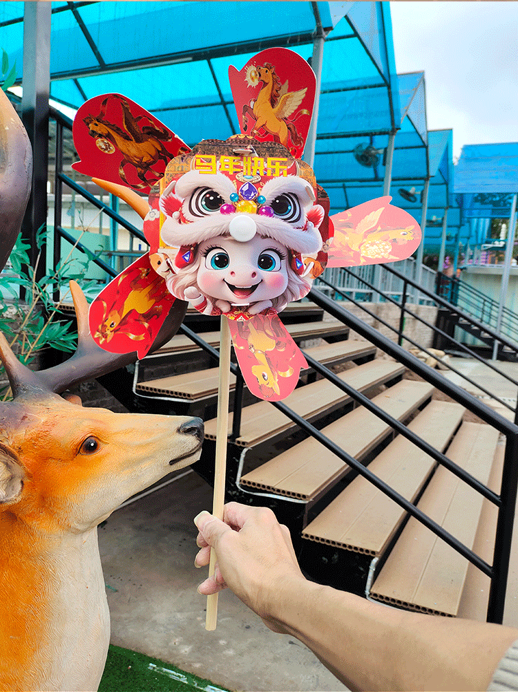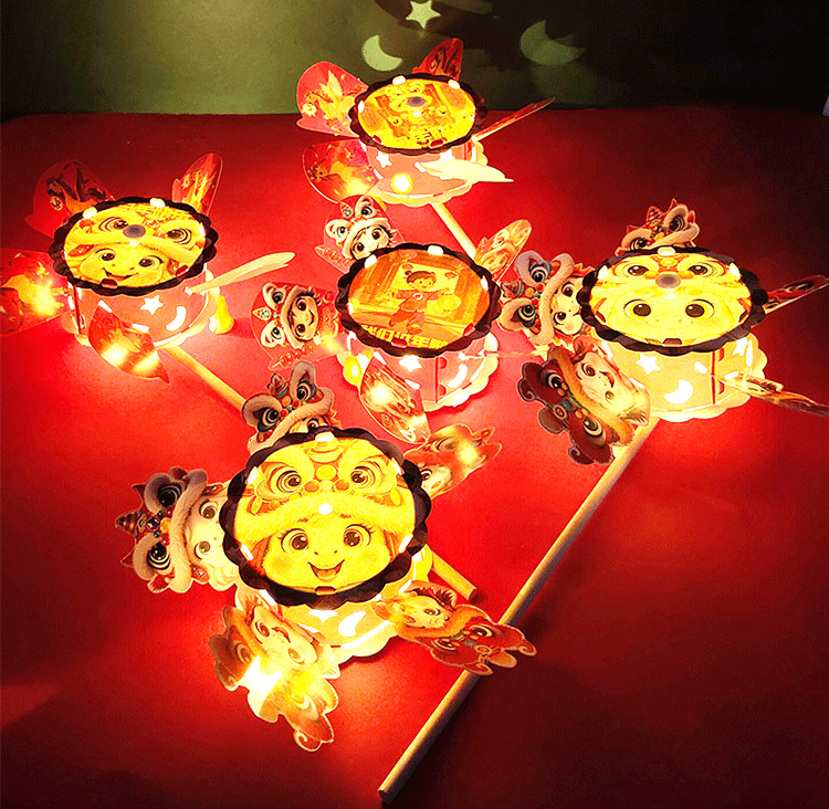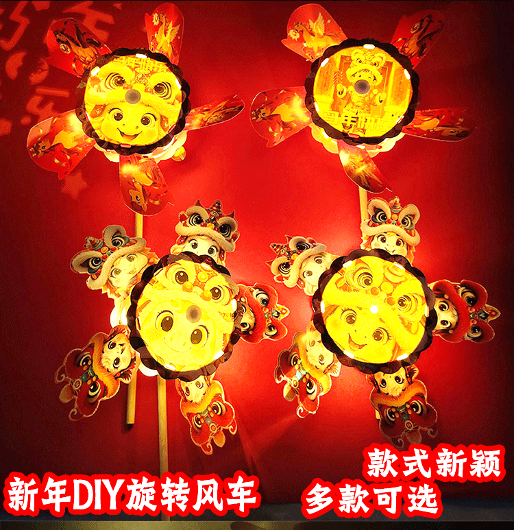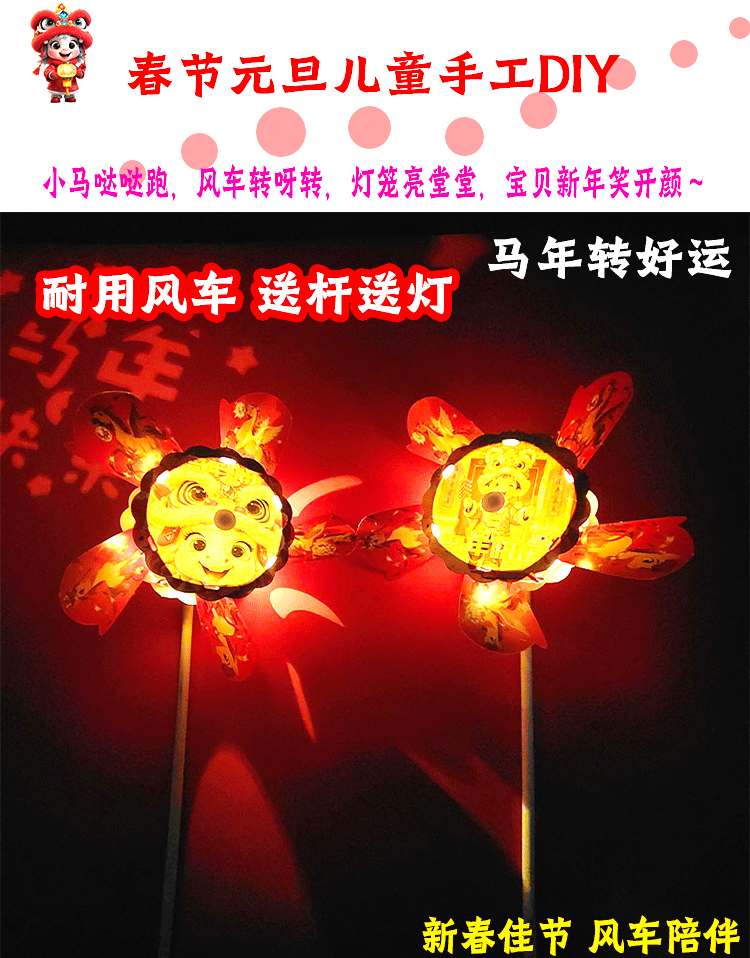 马年儿童360度旋转风车玩具手提发光灯笼手工diy材料包元旦春节