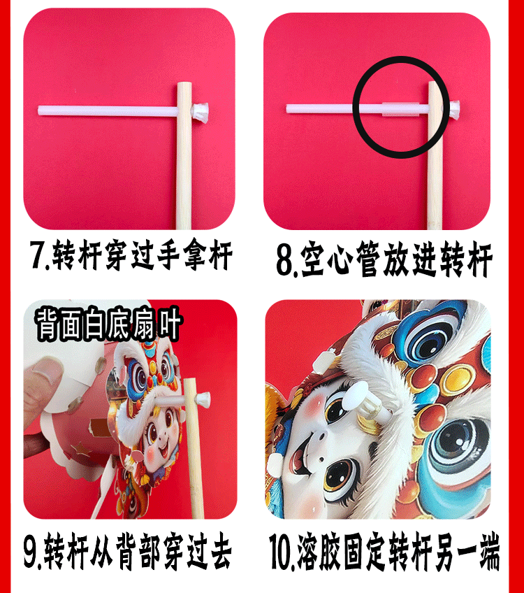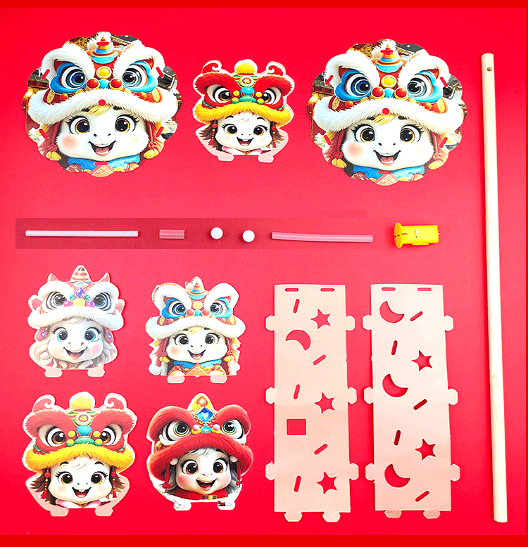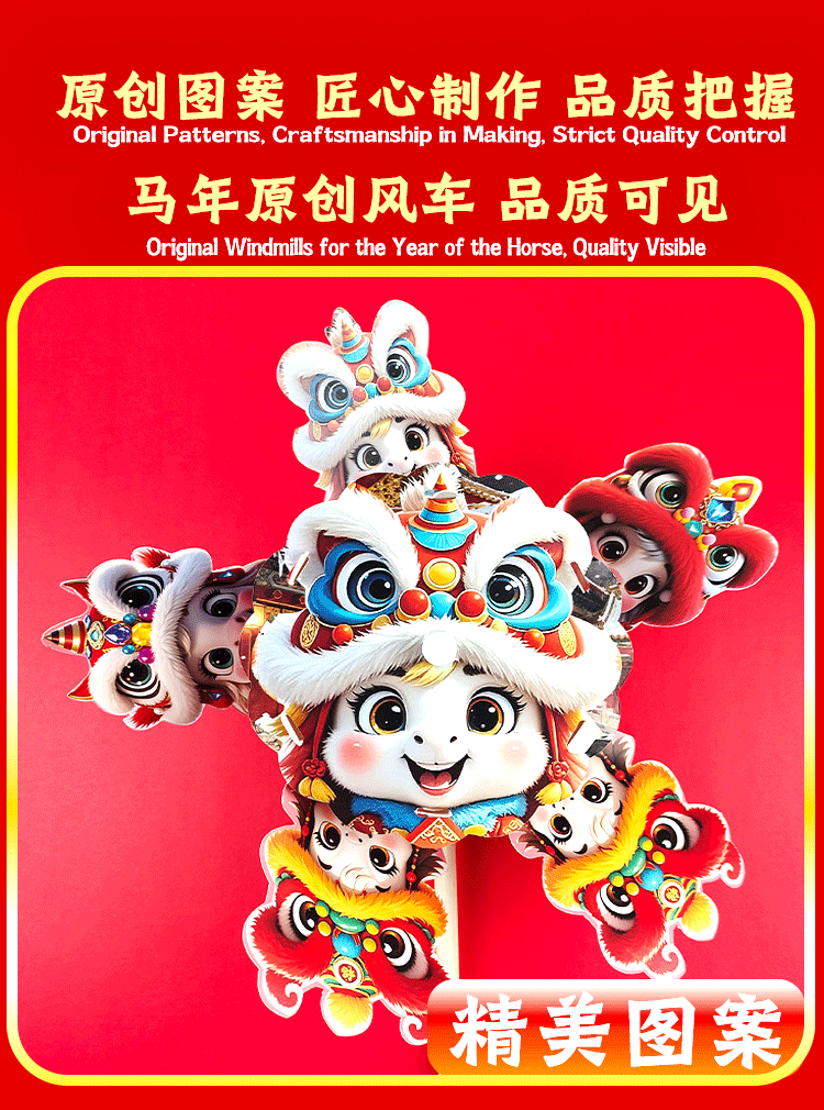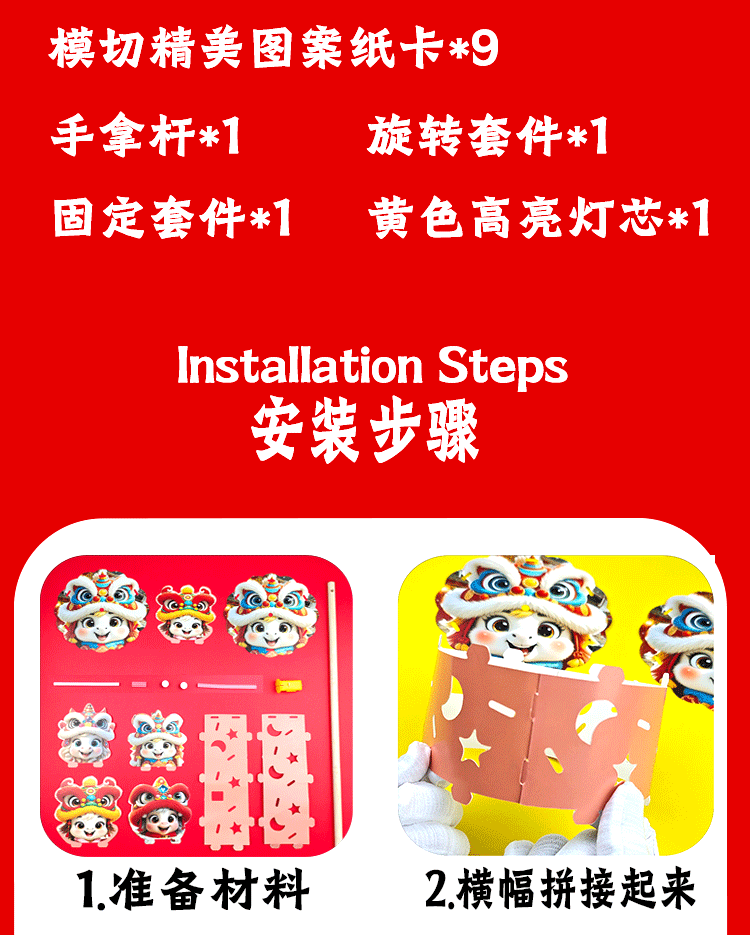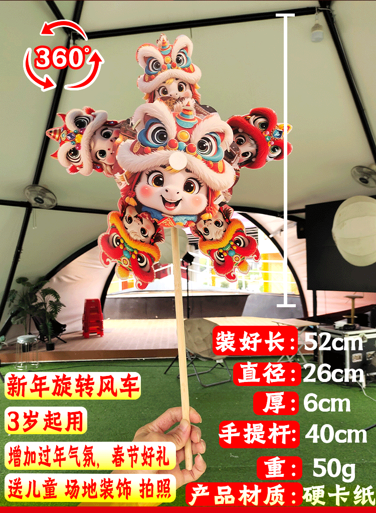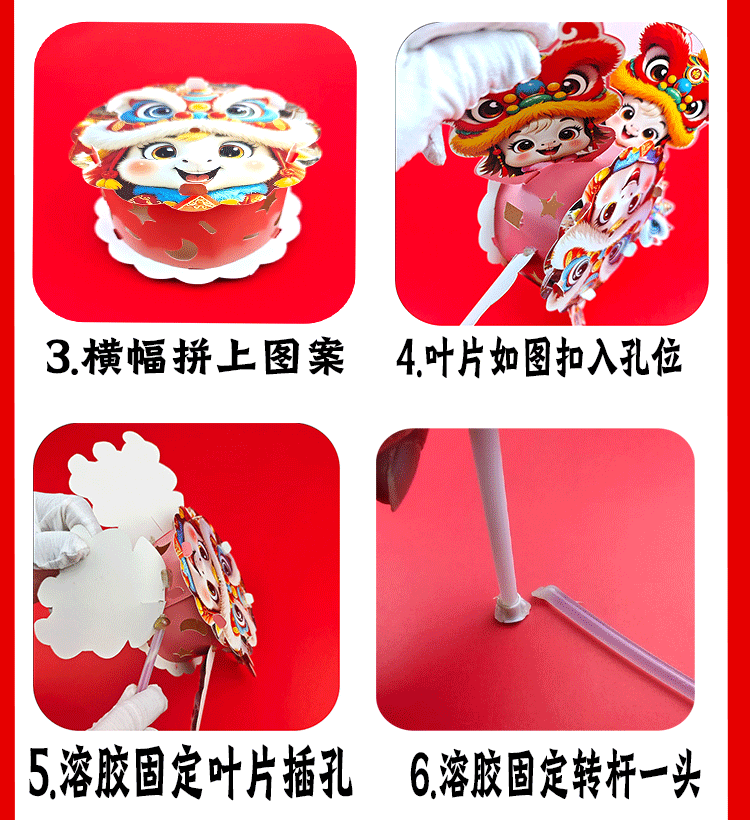马年儿童360度旋转风车玩具手提发光灯笼手工diy材料包元旦春节