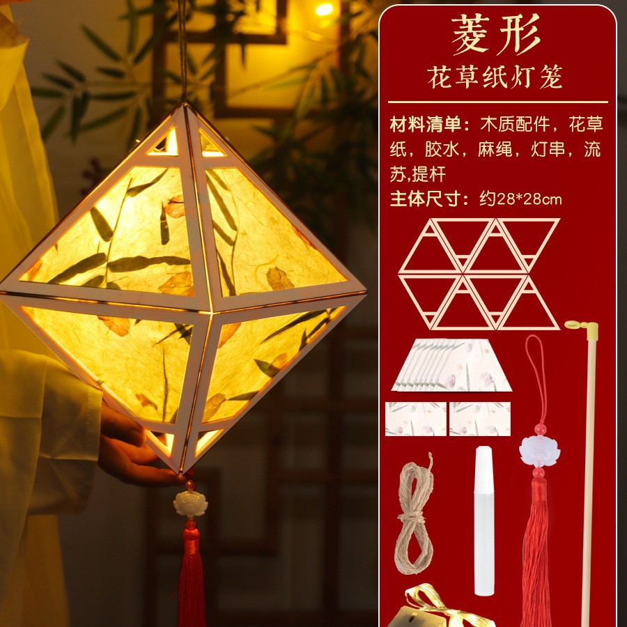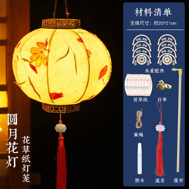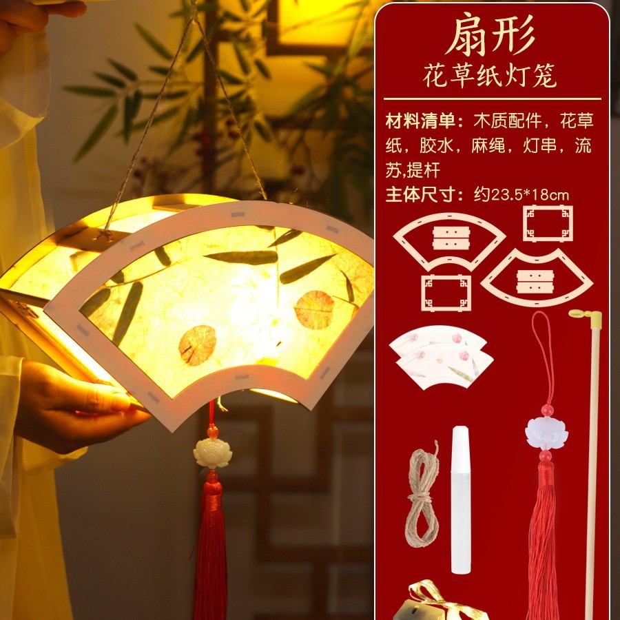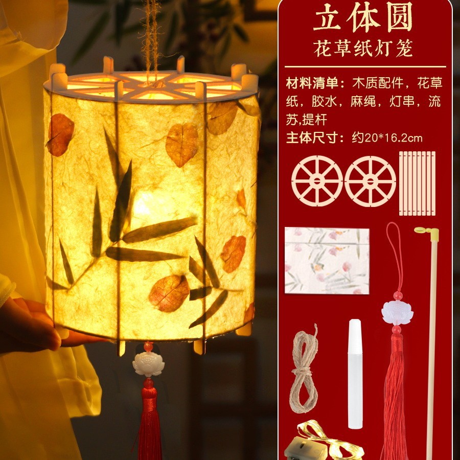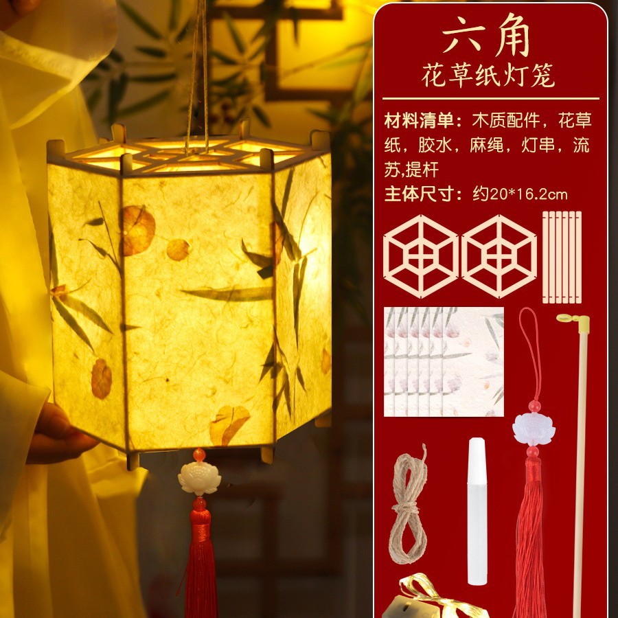 元旦节古风花草纸灯笼手工diy儿童手提发光花灯材料包幼儿园暖场