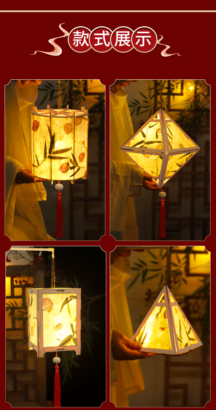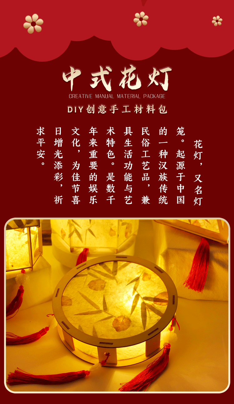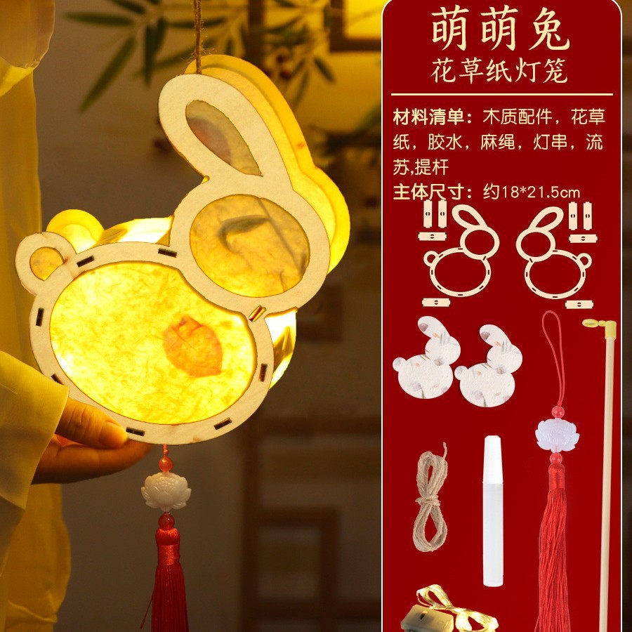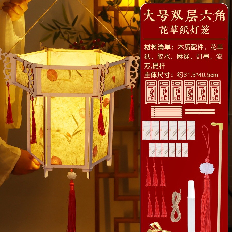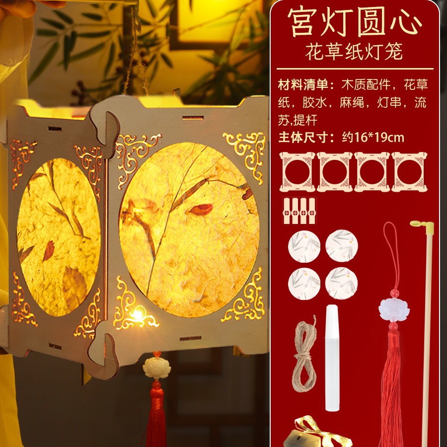 元旦节古风花草纸灯笼手工diy儿童手提发光花灯材料包幼儿园暖场