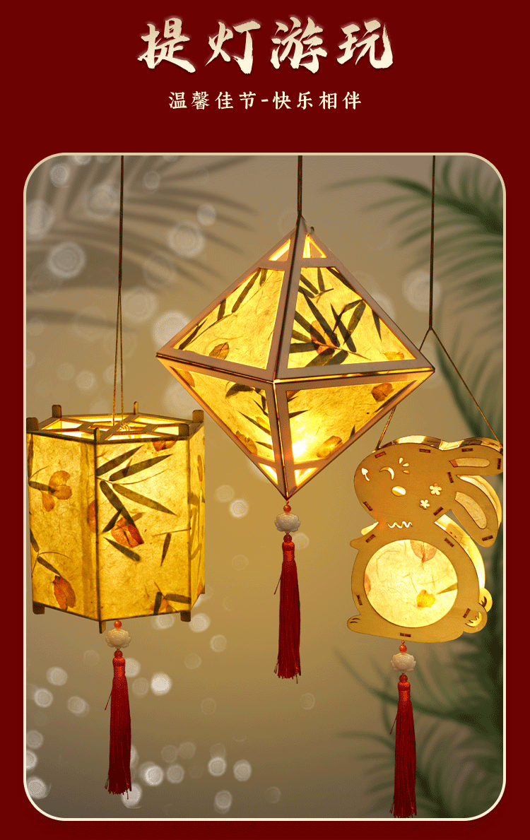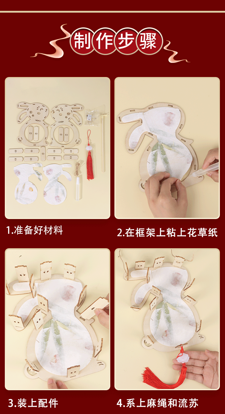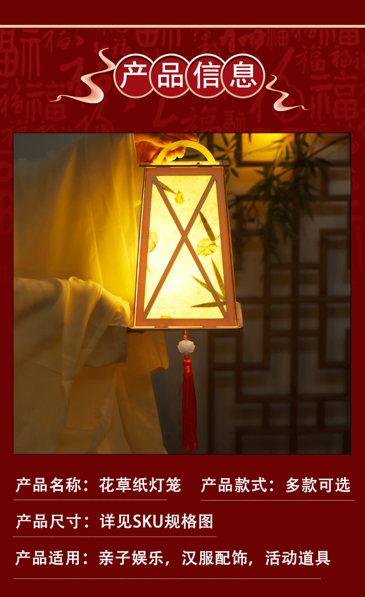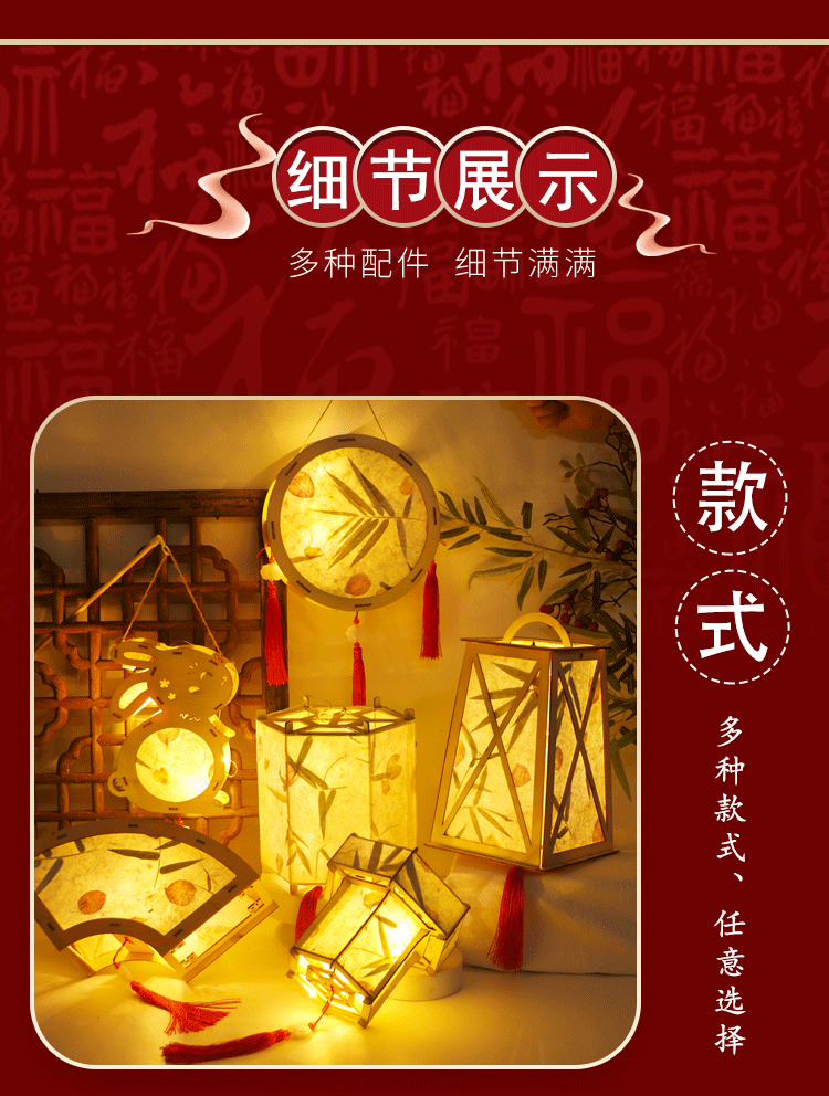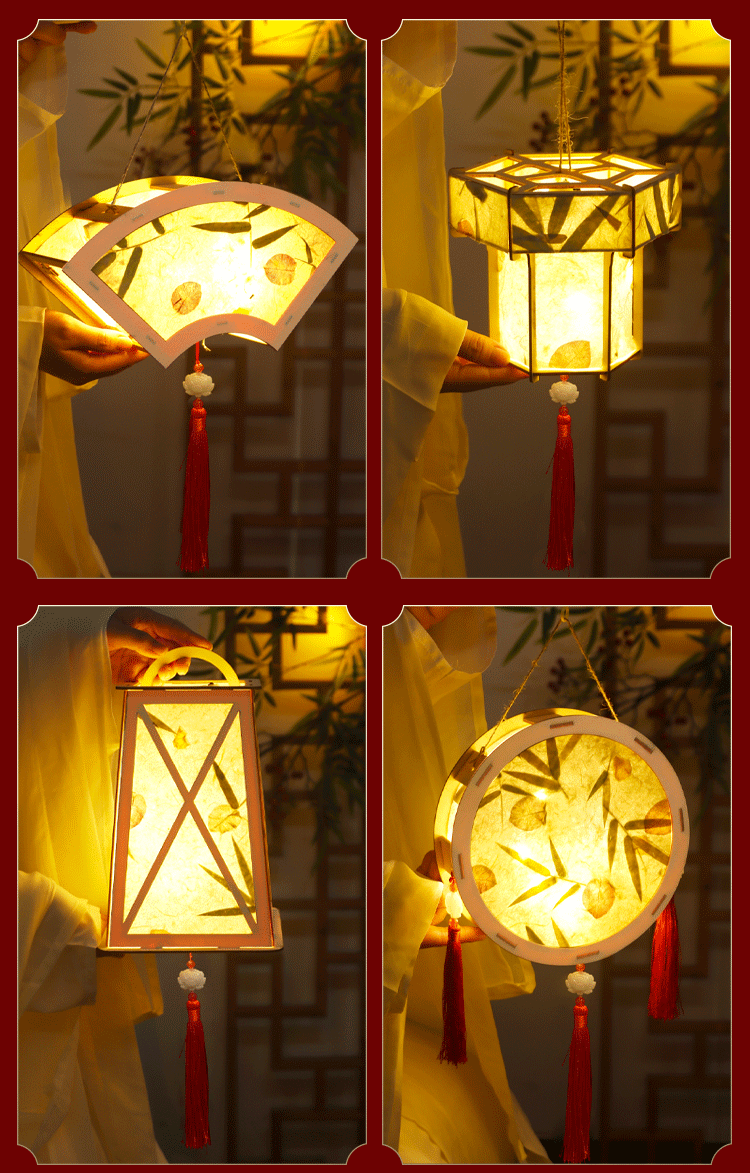 元旦节古风花草纸灯笼手工diy儿童手提发光花灯材料包幼儿园暖场