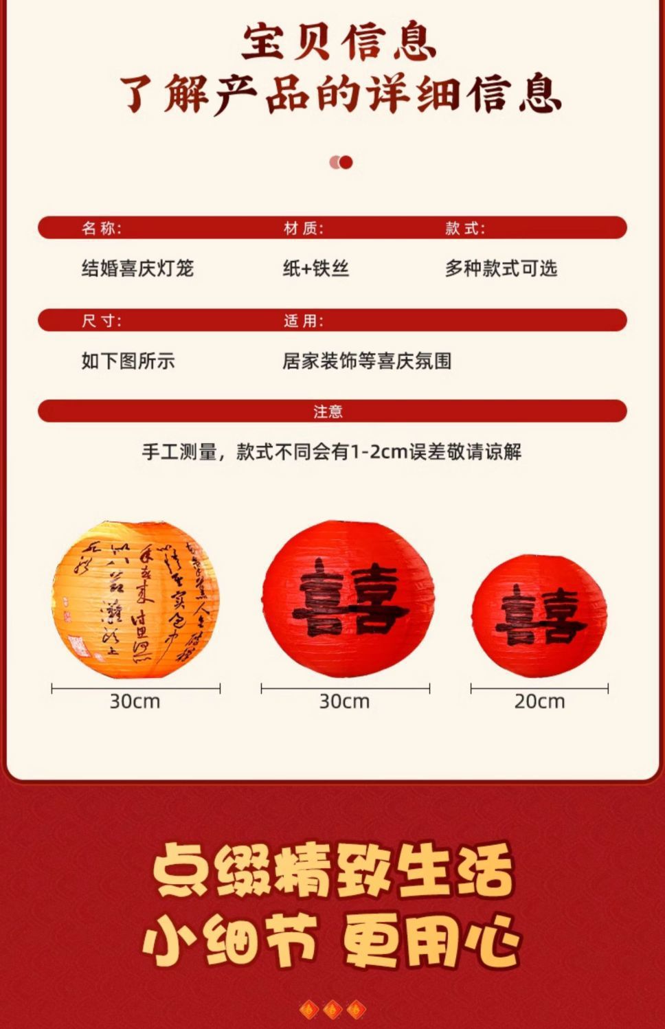 结婚喜字小纸灯笼婚房装饰女方布置套装客厅阳台婚礼农村拍照挂饰