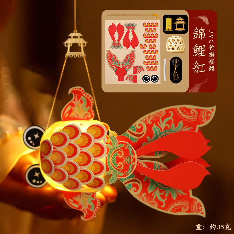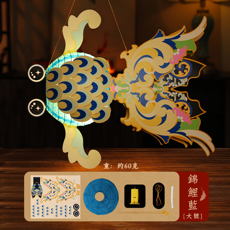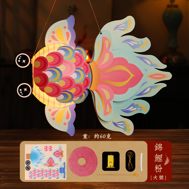 中秋节灯笼金鱼花灯鱼形儿童手提古风宫灯鱼灯diy摆摊发光手工