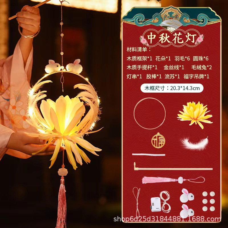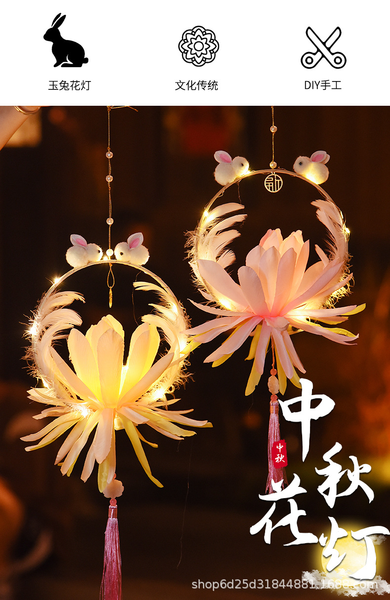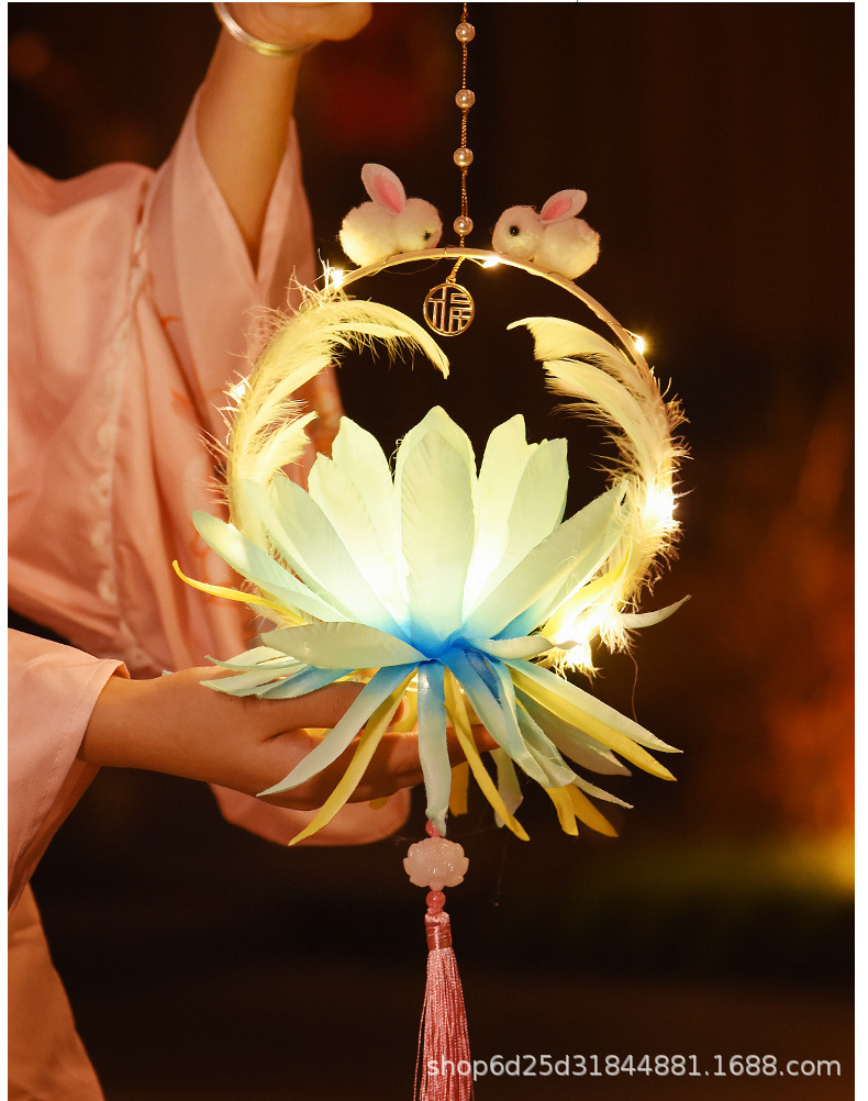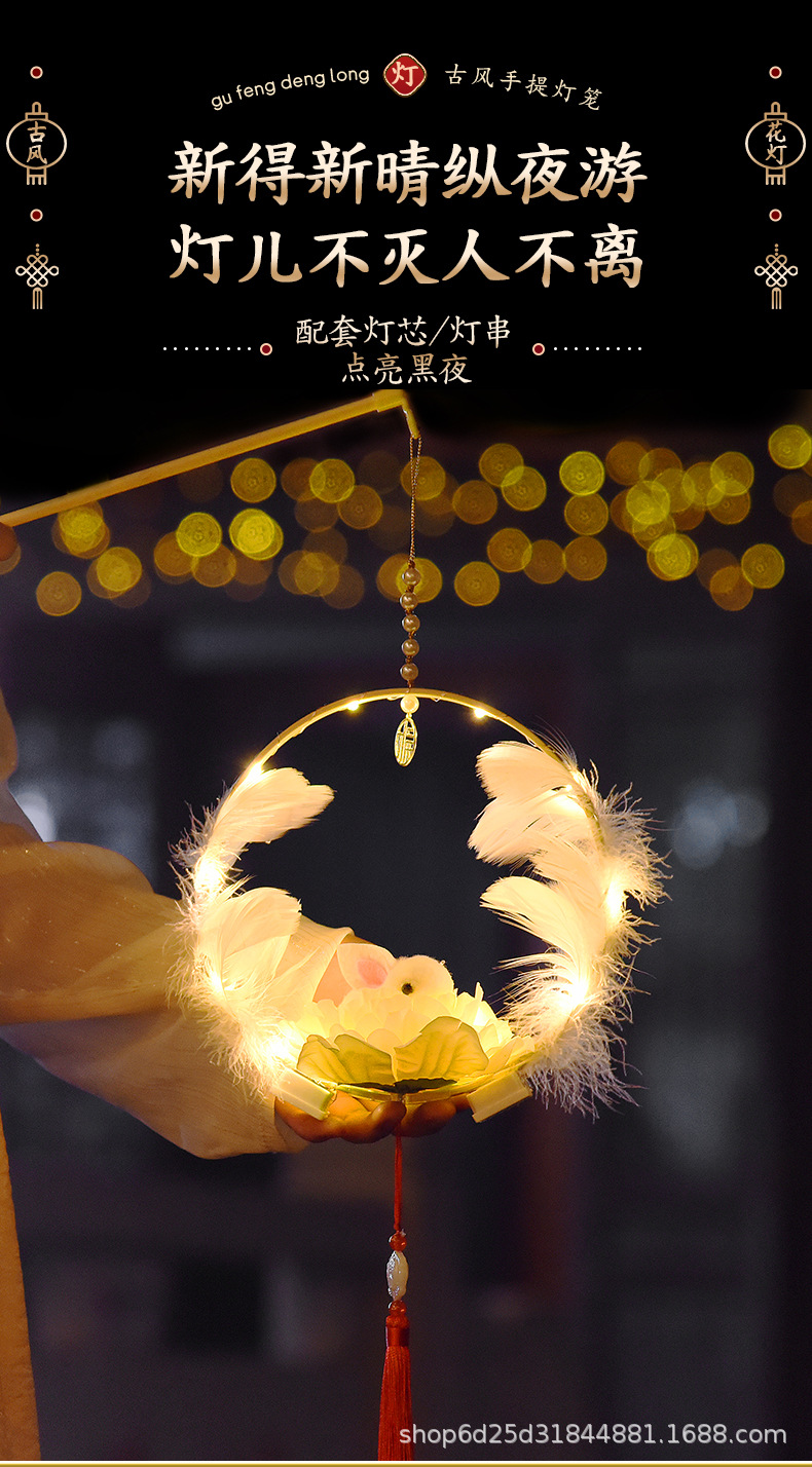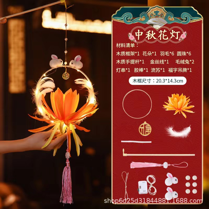 新年莲花灯笼儿童手提diy手工材料包兔子汉服挂饰发光古风花灯