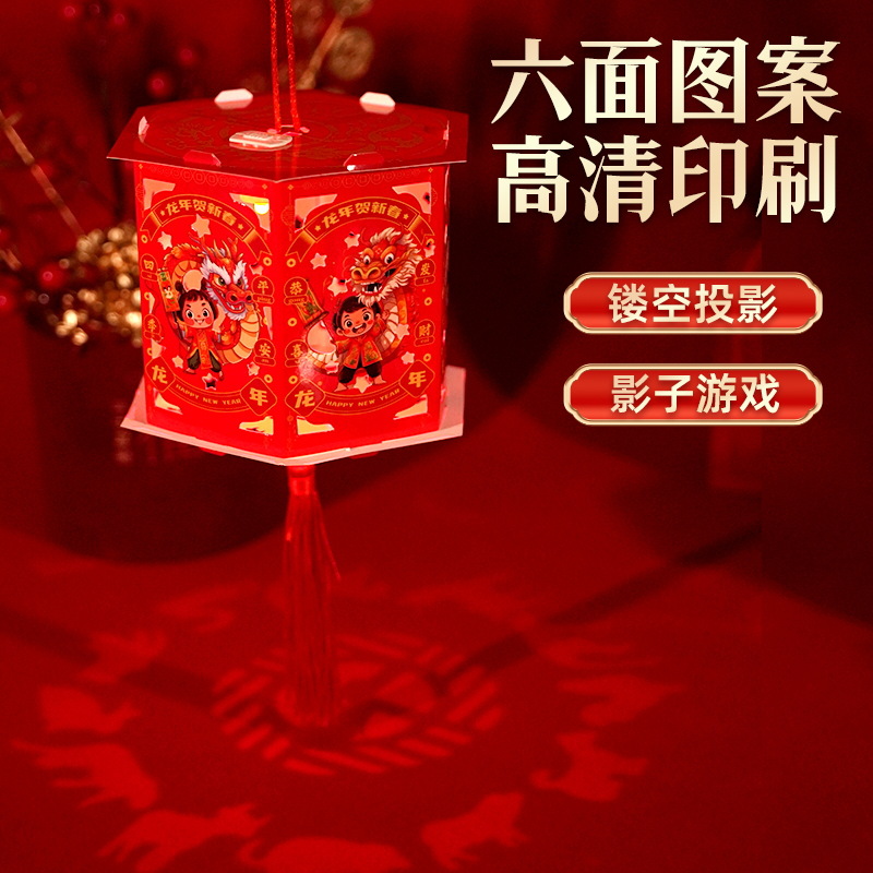中秋发光灯笼儿童手提diy投影纸灯笼卡通走马花灯材料包批发